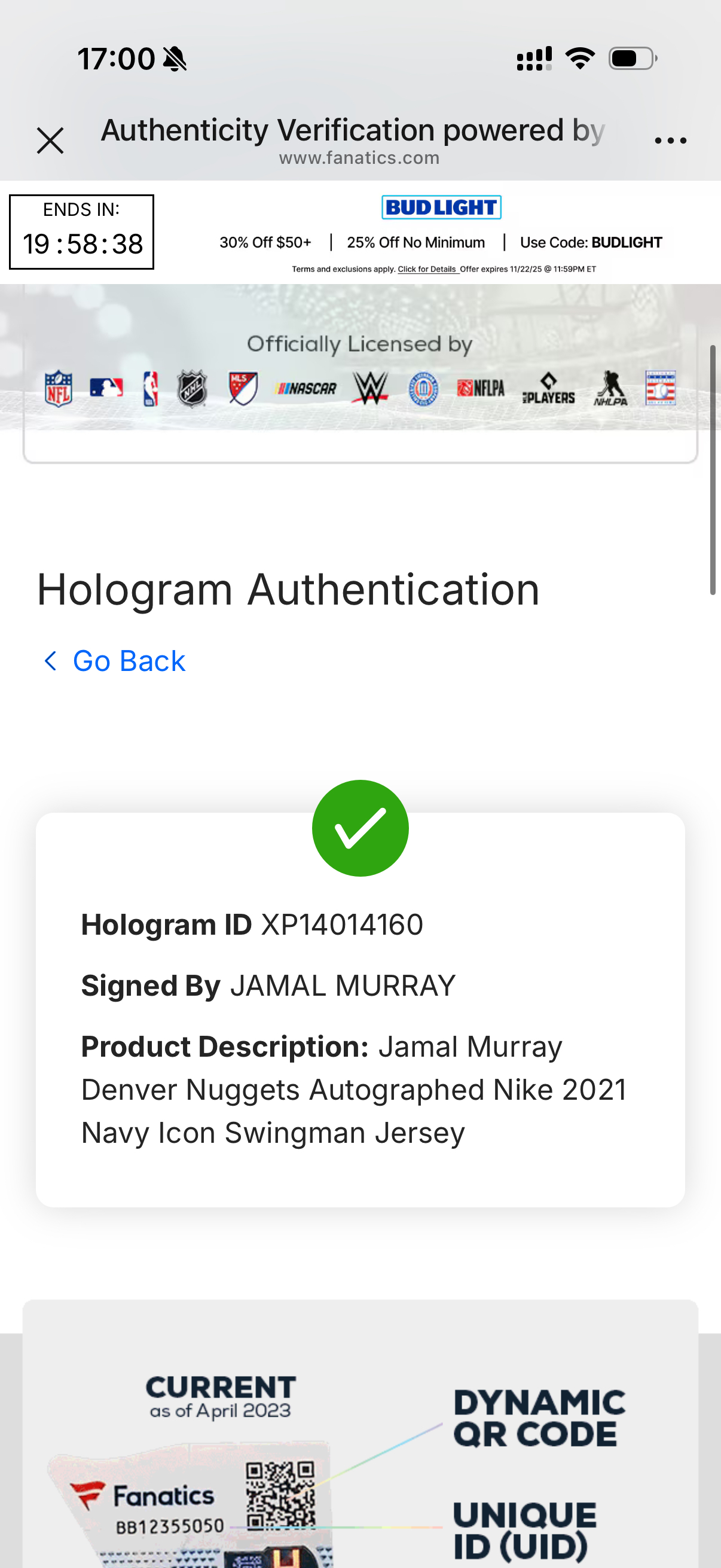 【叫板收藏】掘金队 穆雷  签名球衣 亲签球衣 fanatics官方发行 收藏必备 me