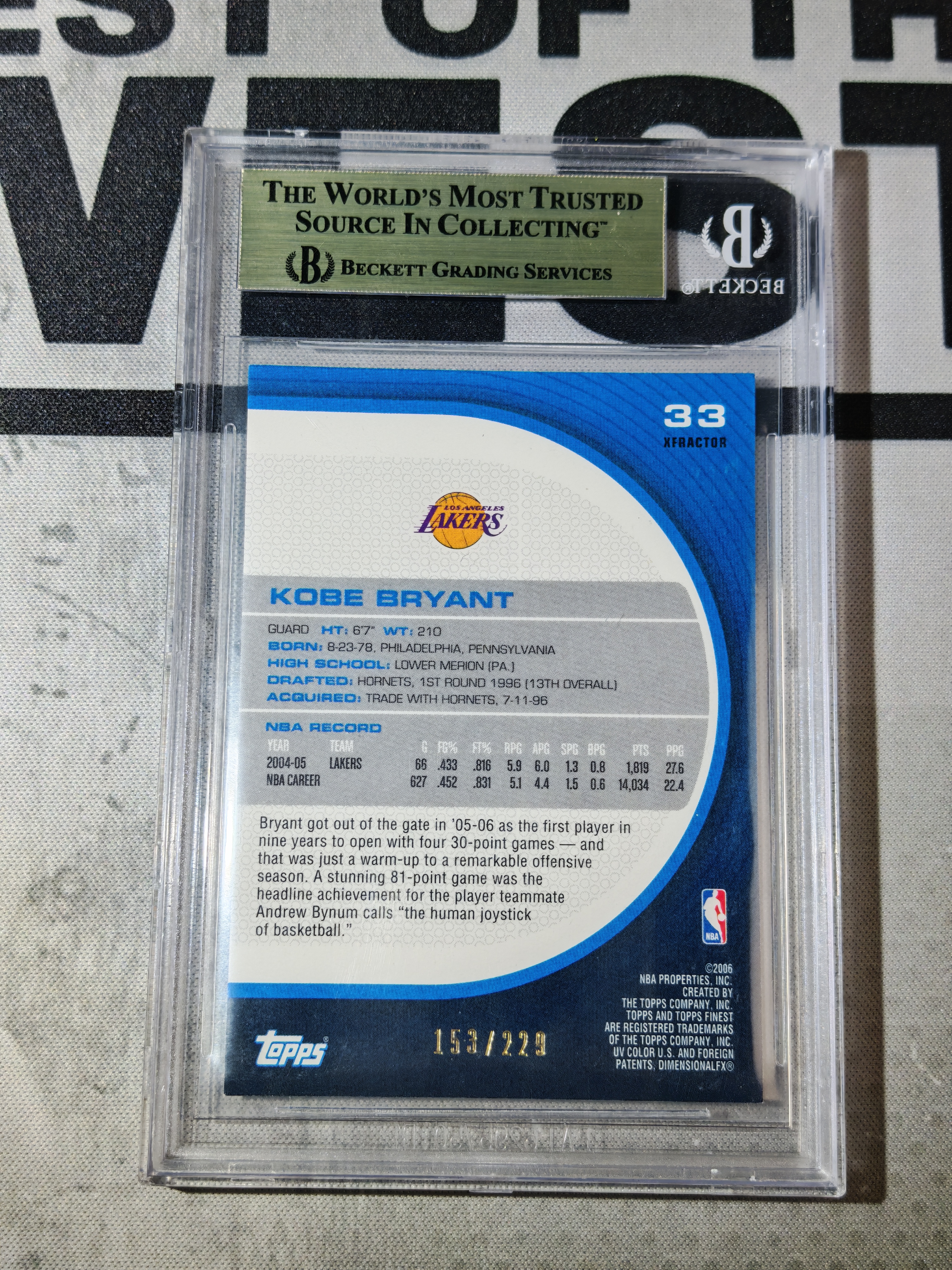 2005-06 Topps Finest Kobe Bryant 科比 布莱恩特 湖人 黑曼巴 X-F Refractors 229编 白格子折 BGS9.5分 金标 经典老特 折射 收藏必备