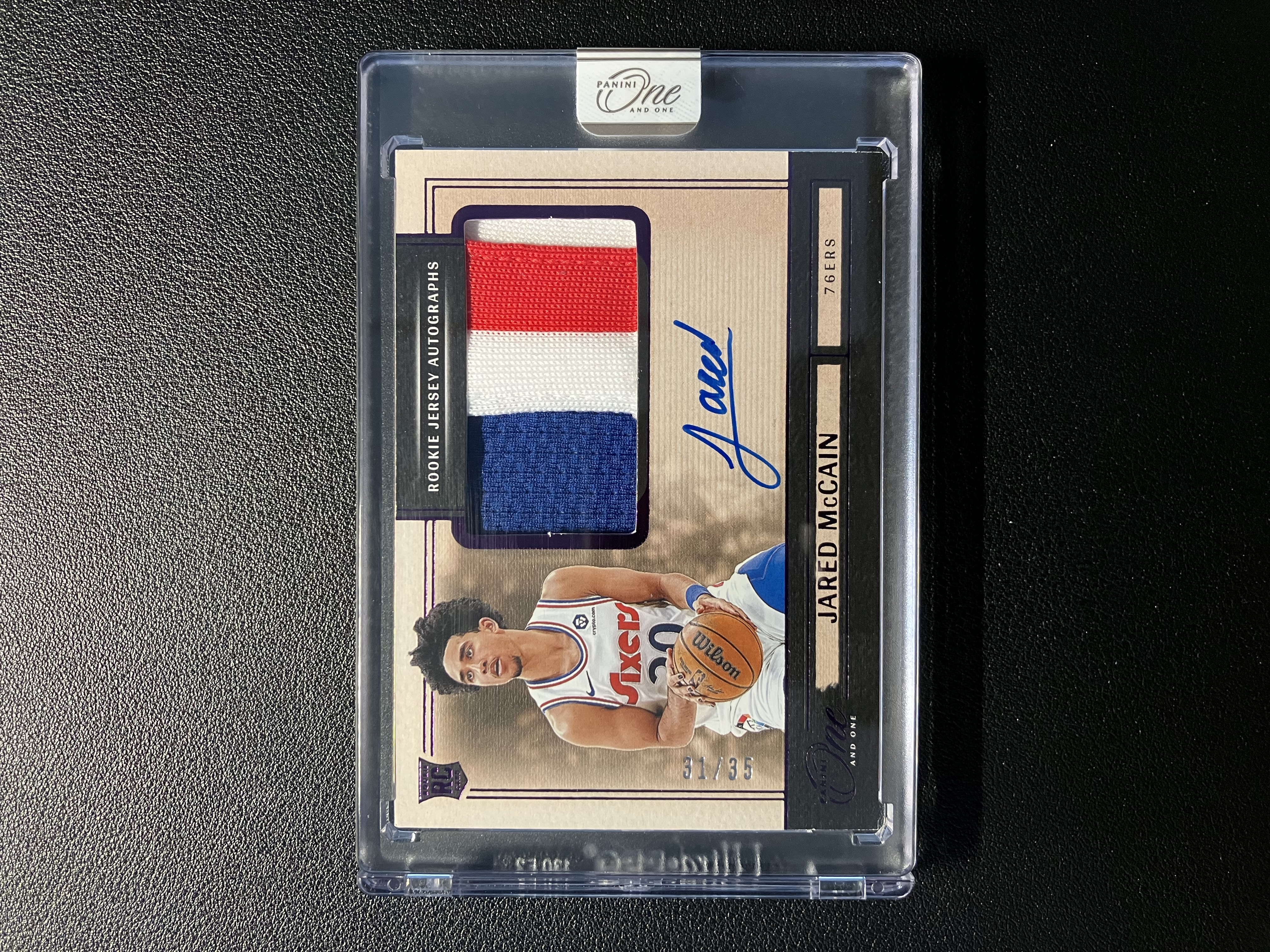 2024-25 Panini One and One Jared McCain RC 贾里德-麦凯恩 31/35编 RPA新秀物料签 签字 卡签 三色 RC新秀 76人 后卫 魔仙哥 原封砖 A003
