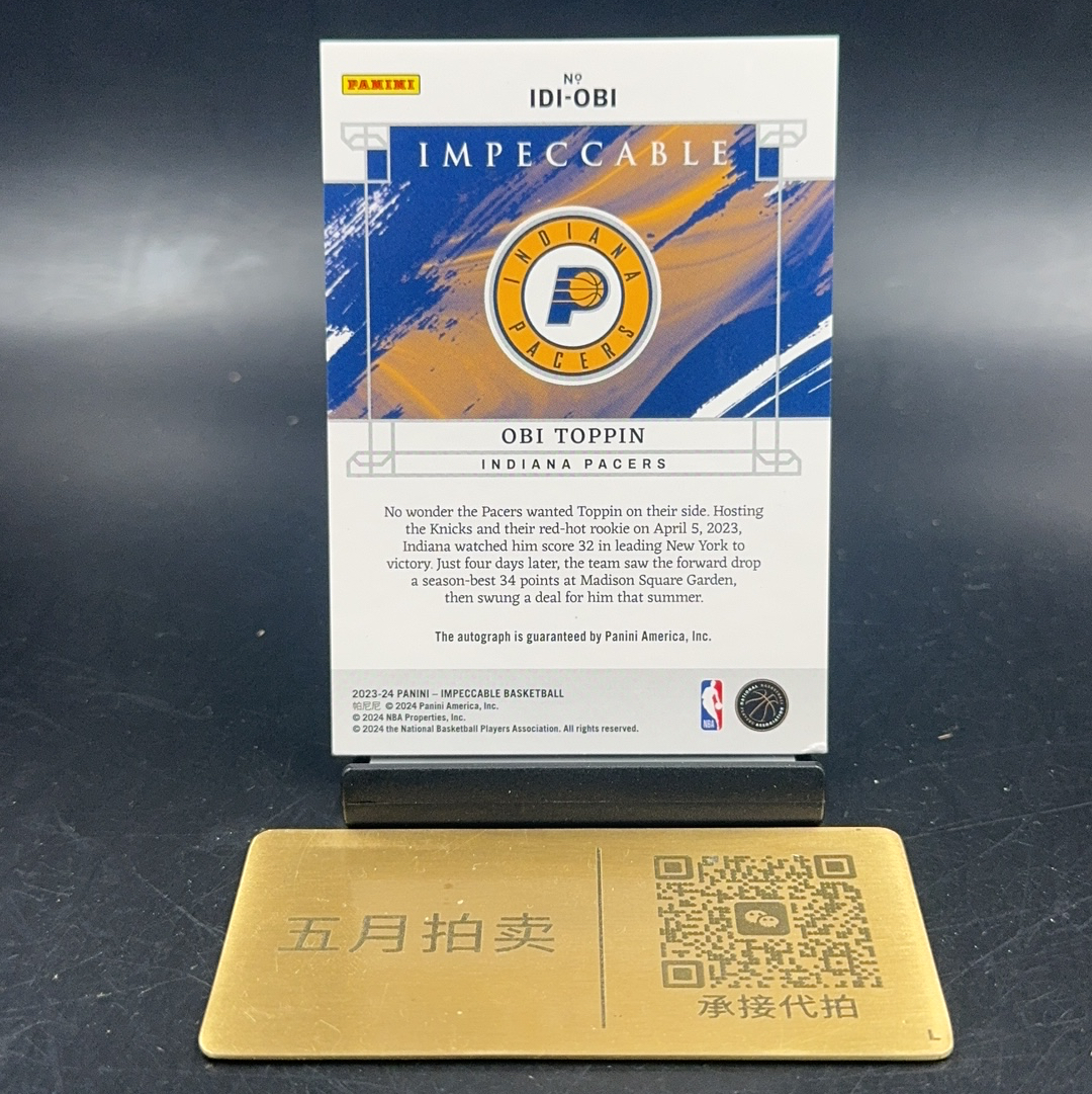 【五月拍卖】2023-24 Panini Impeccable Obi Toppin 小真金 步行者 托平 10/10编 尾编 签字 卡签 金版 限量 低编 微瑕如图 红顶帽q39