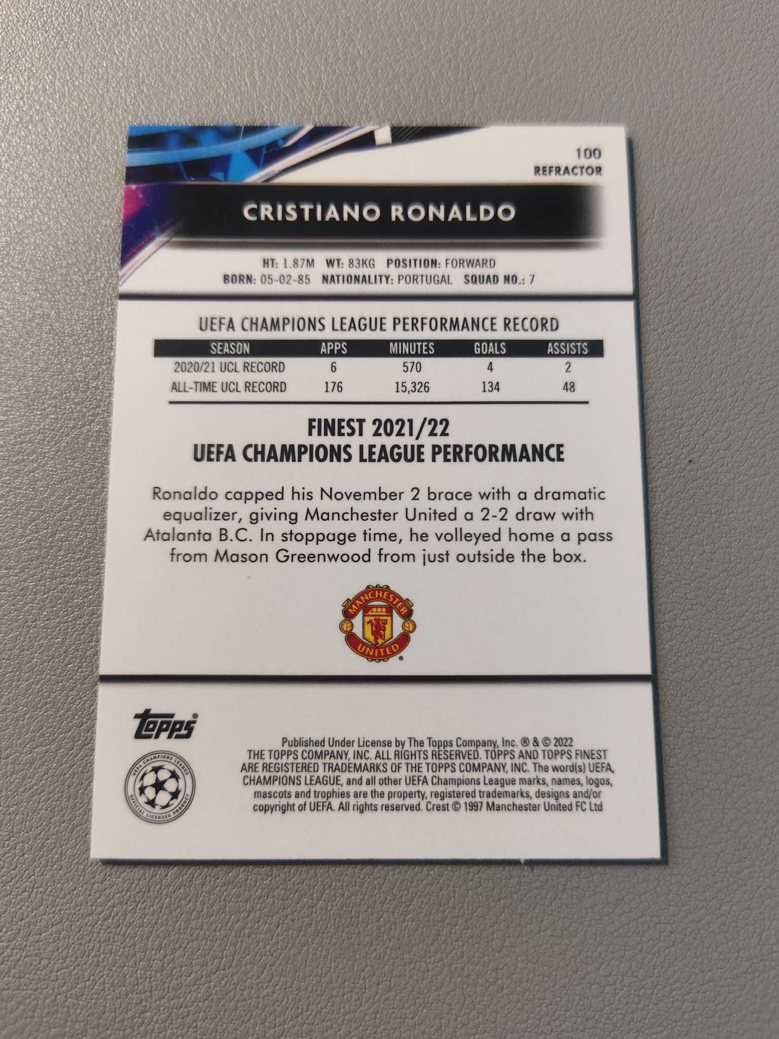 【佩妮拍卖】2022 topps finest 欧冠 RONALDO C罗 罗纳尔多 葡萄牙 皇马 曼联 尤文 金球奖得主 欧洲杯冠军 银折 卡品如图 拍前请阅读描述