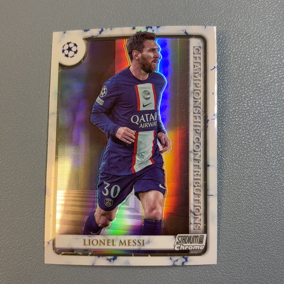 【风速狗】2023-24 topps Chrome STADIUM 竞技场 巴黎 lionel Messi 梅西 大理石 银折 折射 轻印默认微瑕不保品
