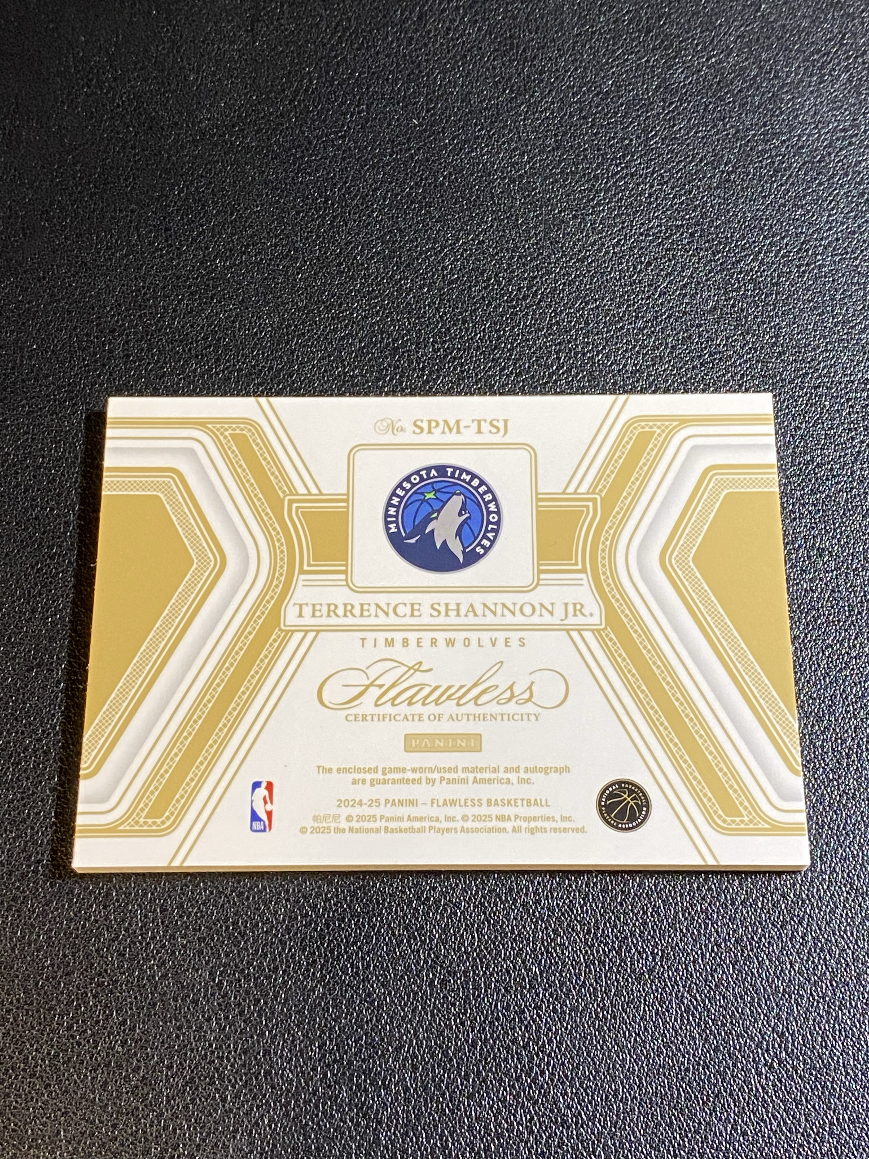 2024-25 Panini Flawless Terrence Shannon Jr. RC 手提系列 森林狼 新秀 小特伦斯 香农 RPA 小窗patch 签字 卡签 1/15首编 微瑕如图 送砖