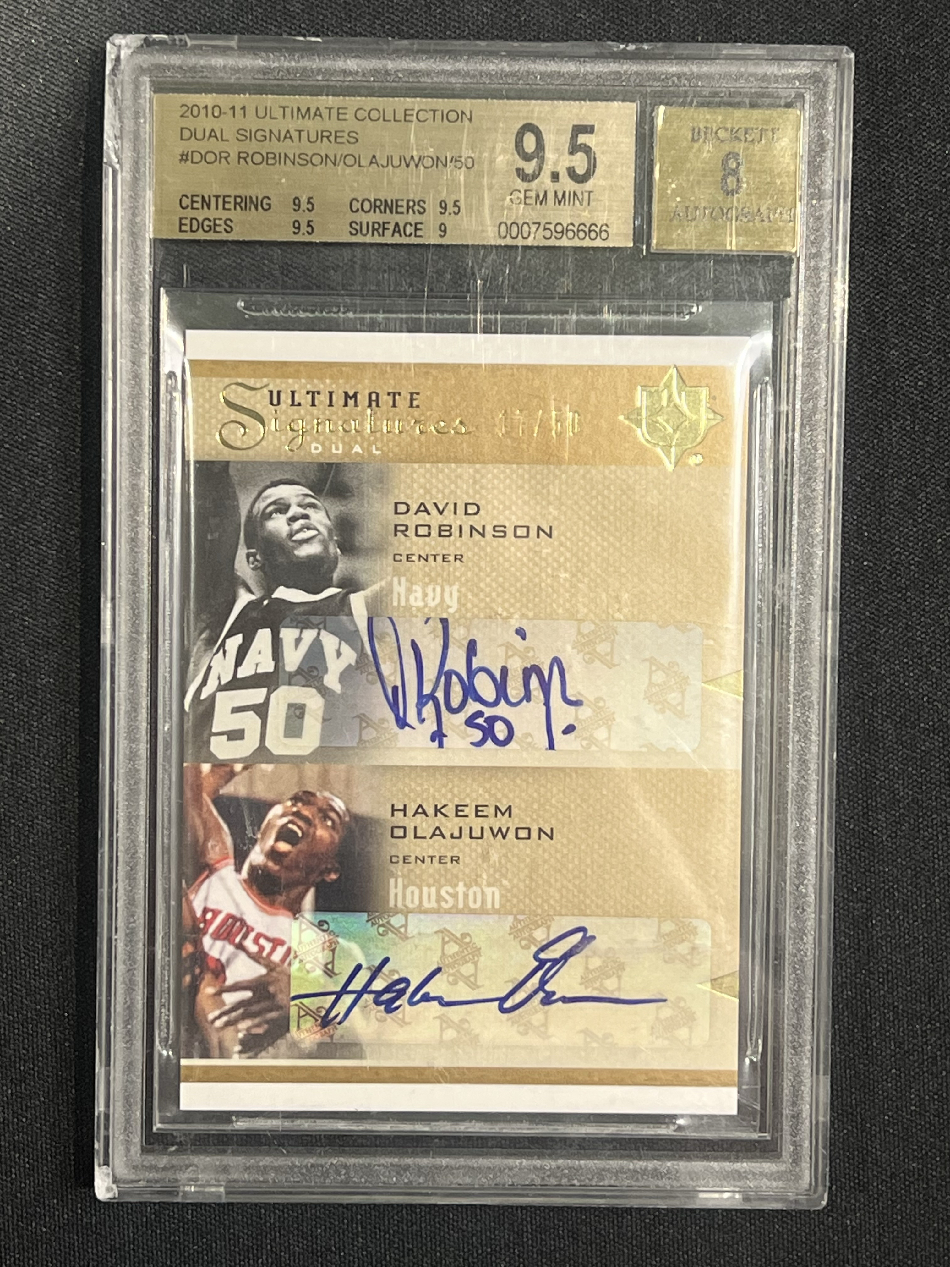 【卡卡星拍卖】2010 UD 大卫 罗宾逊 奥拉朱旺 50编 双人 签字 BGS卡品9.5分 签字8分 壳有破损 卡品如图user