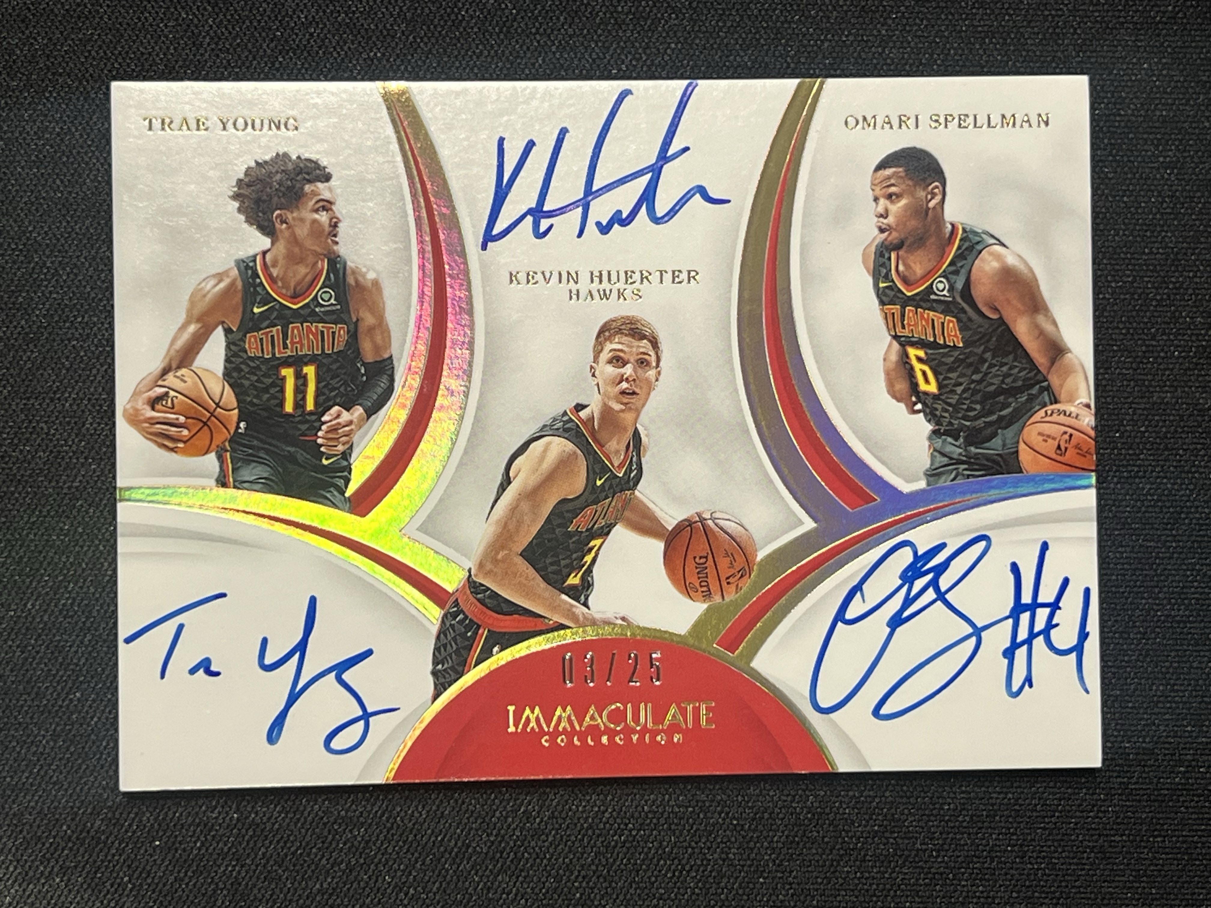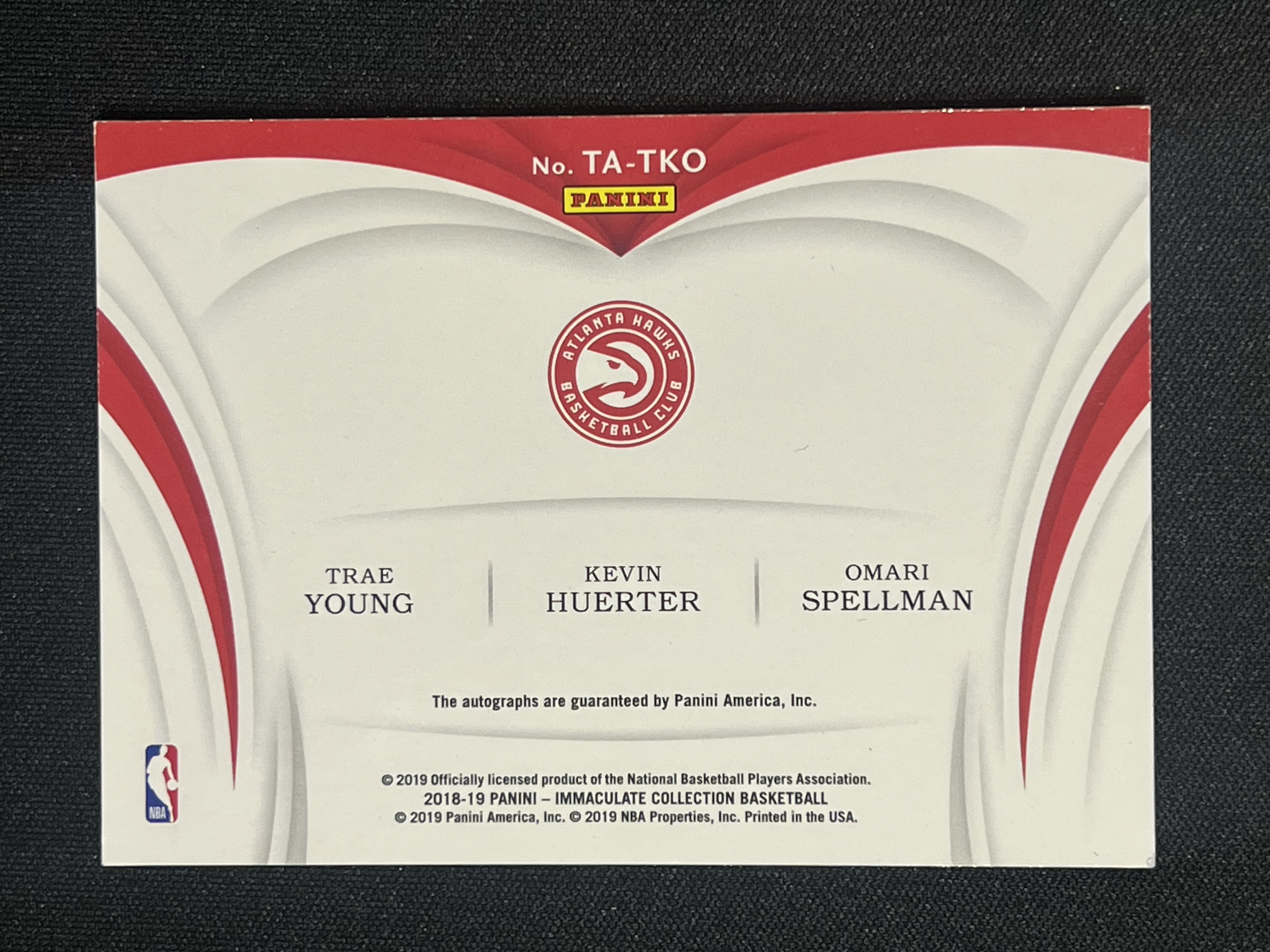 【卡卡星拍卖】2018-19 Panini Immaculate Trae Young RC 特雷杨 许尔特 斯佩尔曼 新秀 25编 三人签字 卡签 卡品如图user