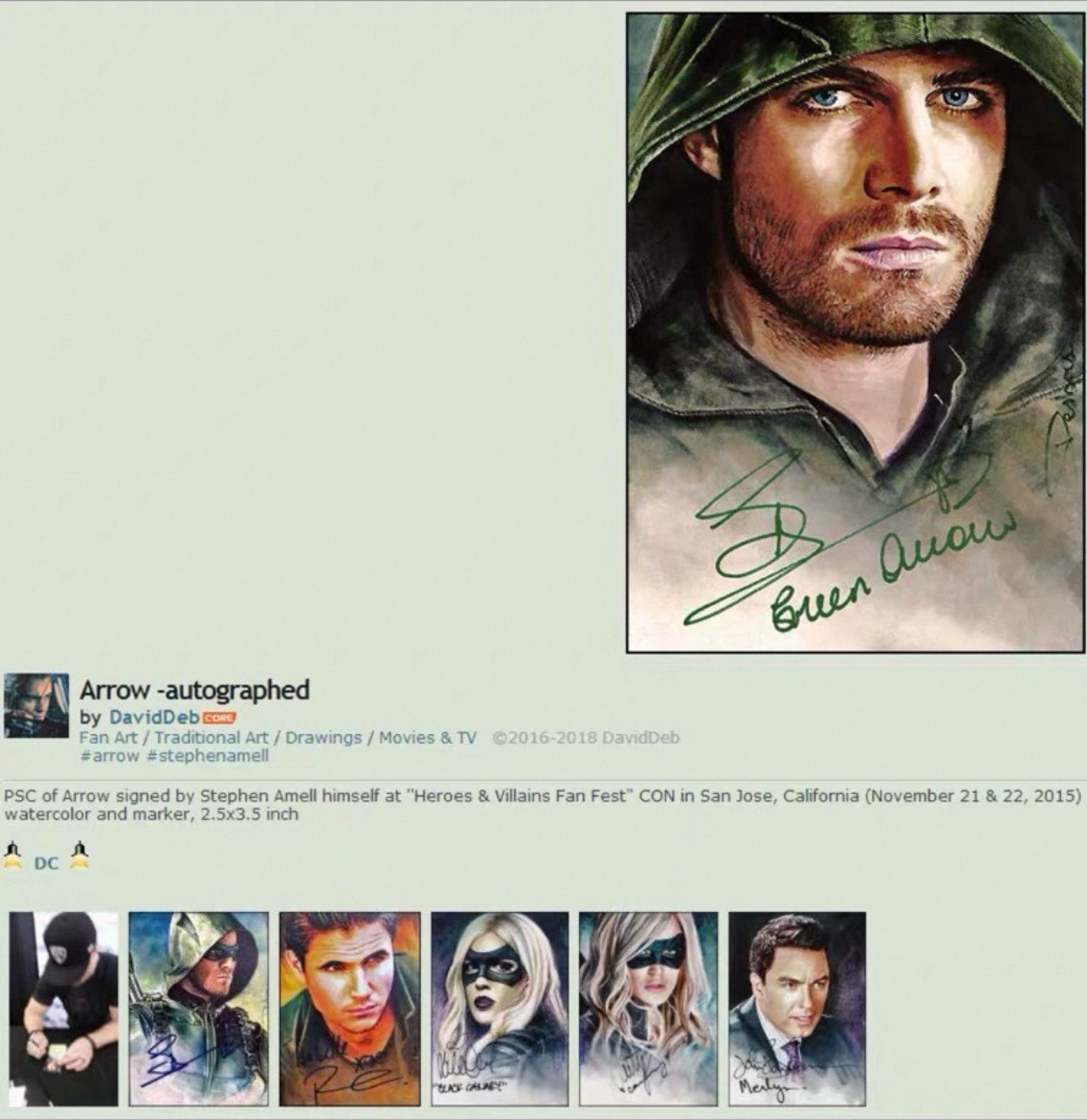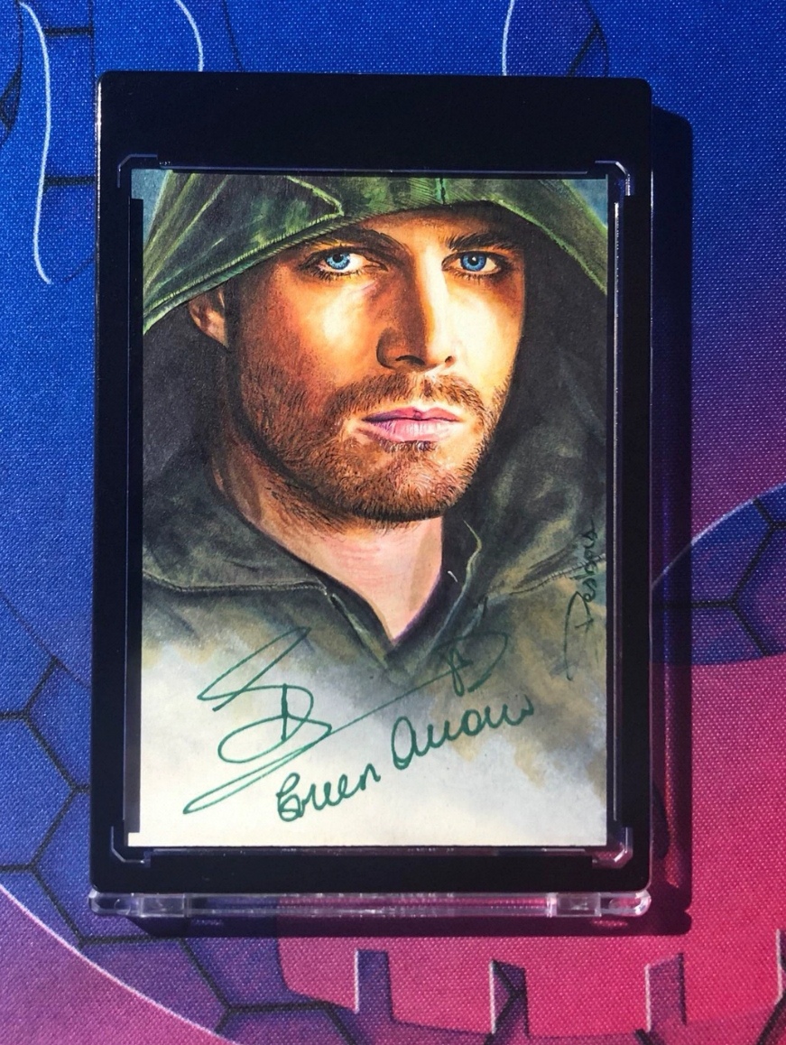 2018 绿箭侠 签绘 GreenArrow 斯蒂芬阿梅尔 藕丝 David Desbois 斯蒂芬亲笔签名 铭文签 顶级画师藕丝+绿箭侠斯蒂芬铭文签绘 手绘卡