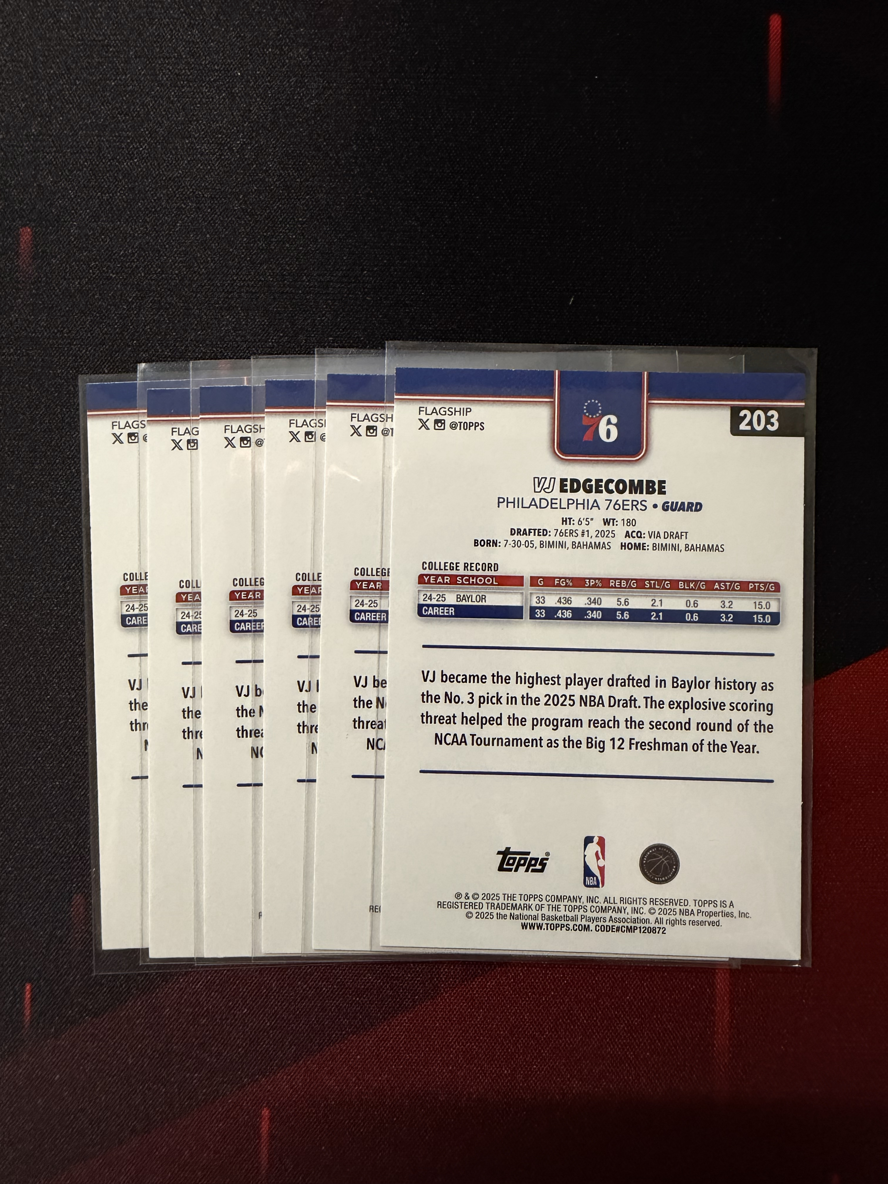 2025 Topps Flagship Basketball VJ Edgecombe RC Topps篮球旗舰 VJ 埃奇库姆 76人 首秀爆炸 新赛季表现出色 正Base 6张 1#