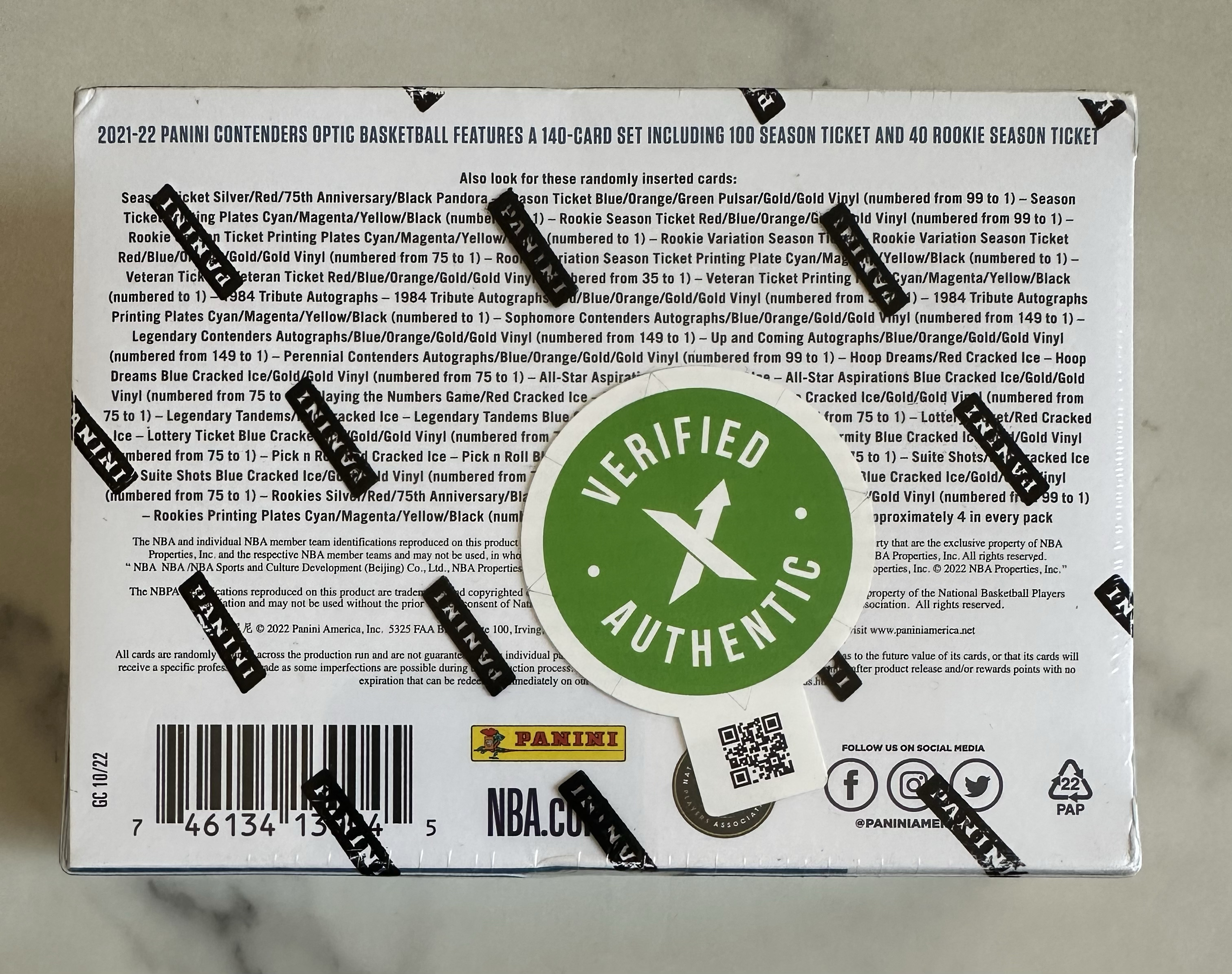 2021-22 Panini Contenders Optic Luka Doncic 球票optic Hobby 6张/包 1包/盒 博新秀坎宁安杰伦格林詹姆斯库里博爆金一编一卡签 原封盒(双哥01