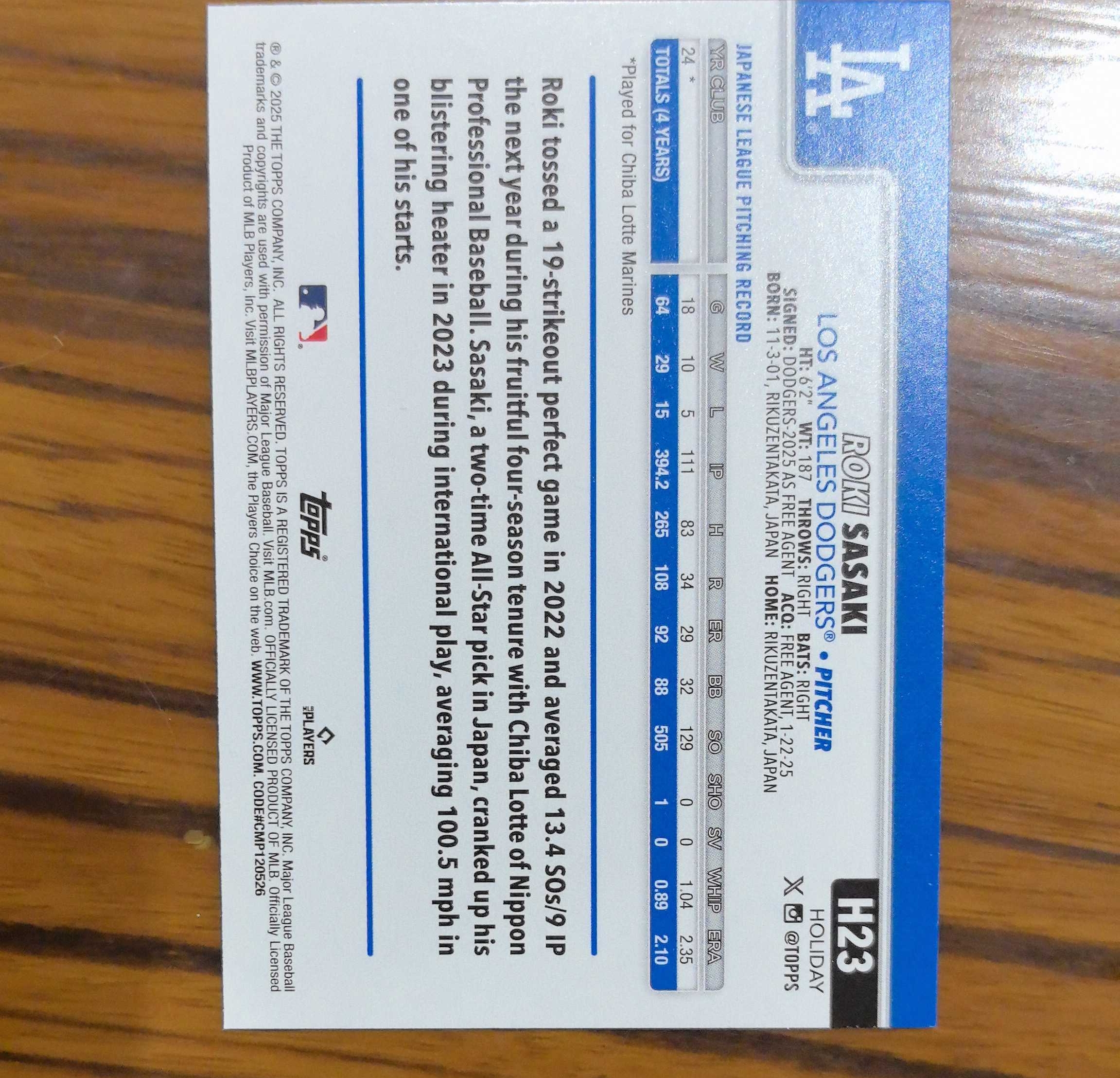 2025 Topps 【锡安代卖】 累计照常 棒球mlb series 假日圣诞盒 圣诞树平行 洛杉矶道奇热门新秀王牌投手 roki sasaki 佐佐木朗希 卡品如图 消失