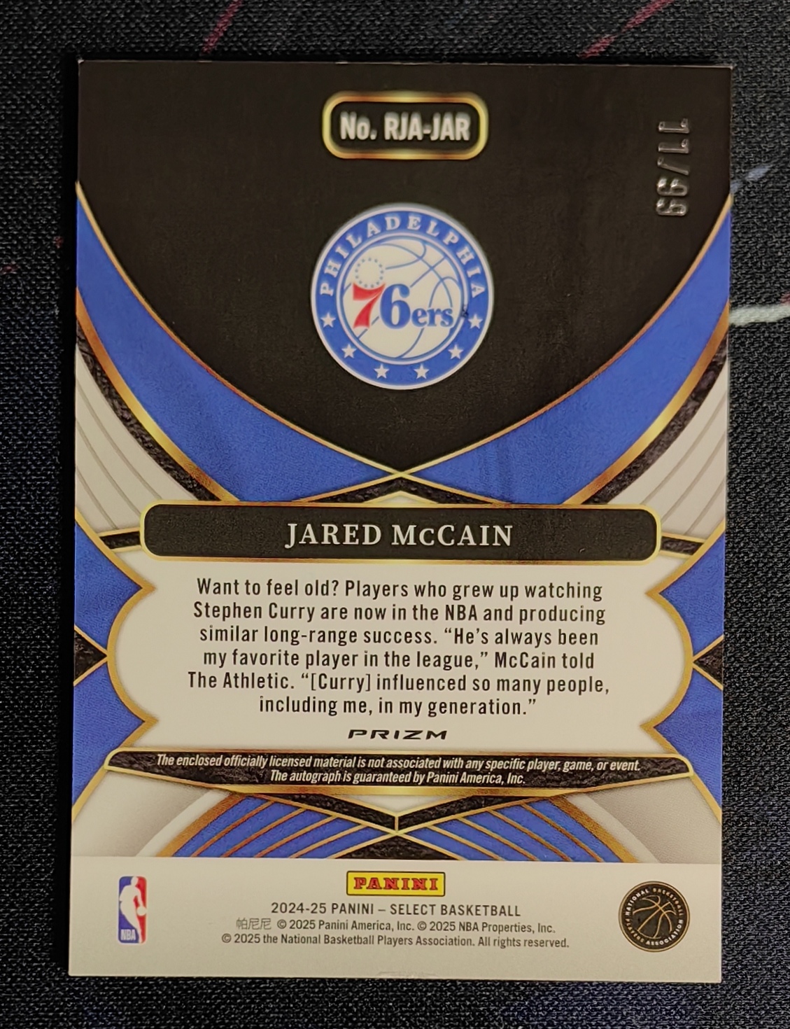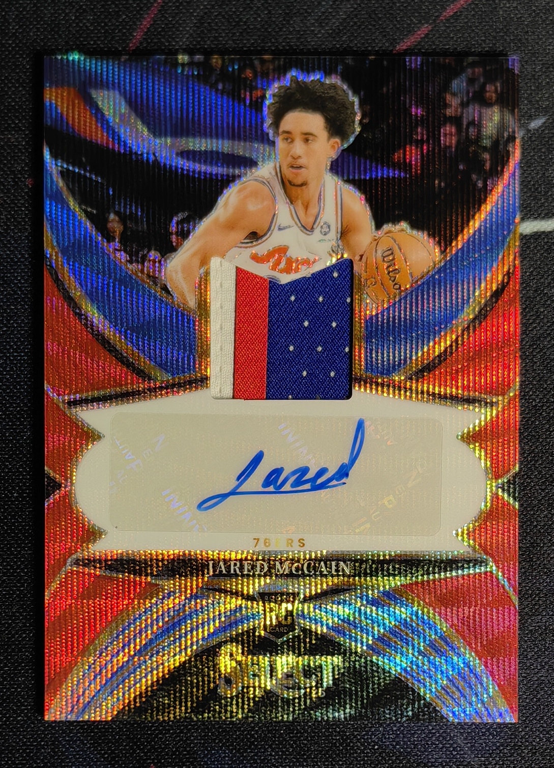 2024-25 Panini Select Jared McCain RC 76人 新秀RC 贾里德麦凯恩 签字99编 三色球衣暴力切割 红波纹折射RPA 潜力新星(爱妈拍卖)可累计 免费代拍 瑕疵看图