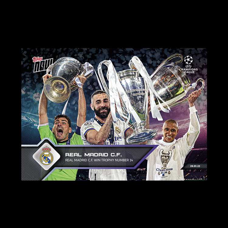 2022 Topps Now Real Madrid 欧冠 皇马 皇家马德里 获得队史第14座欧冠冠军 本泽马 卡西利亚斯 卡洛斯捧杯选图(彬伯)【JS卡牌潮玩】(随机发货,卡品通行)