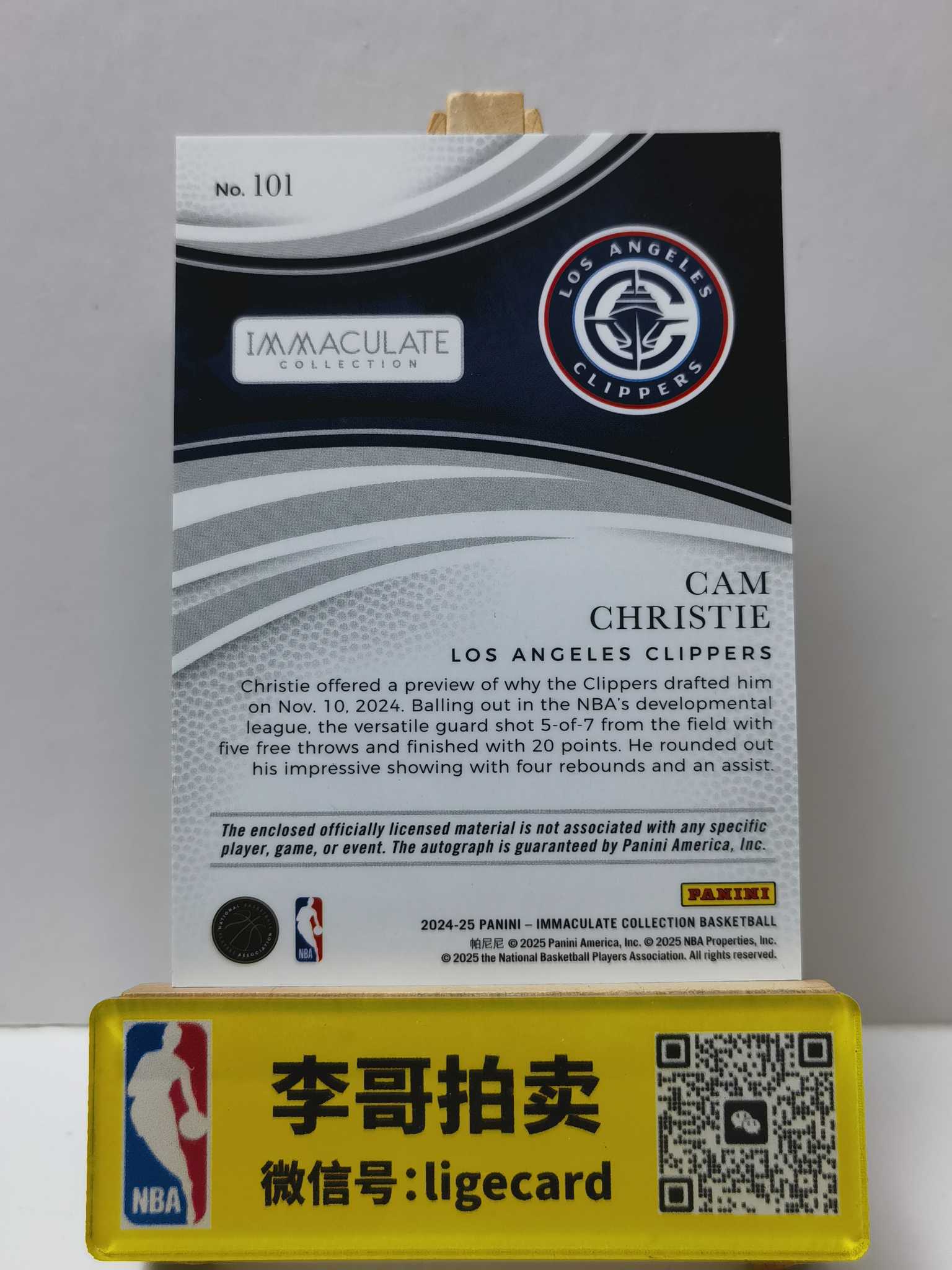 2024-25 Panini Immaculate Cam Christie 【李哥代卖】爱咪咪 卡姆克里斯蒂 99编 RJA RC新秀 卡签签字 球衣切割 快船 Misty1117