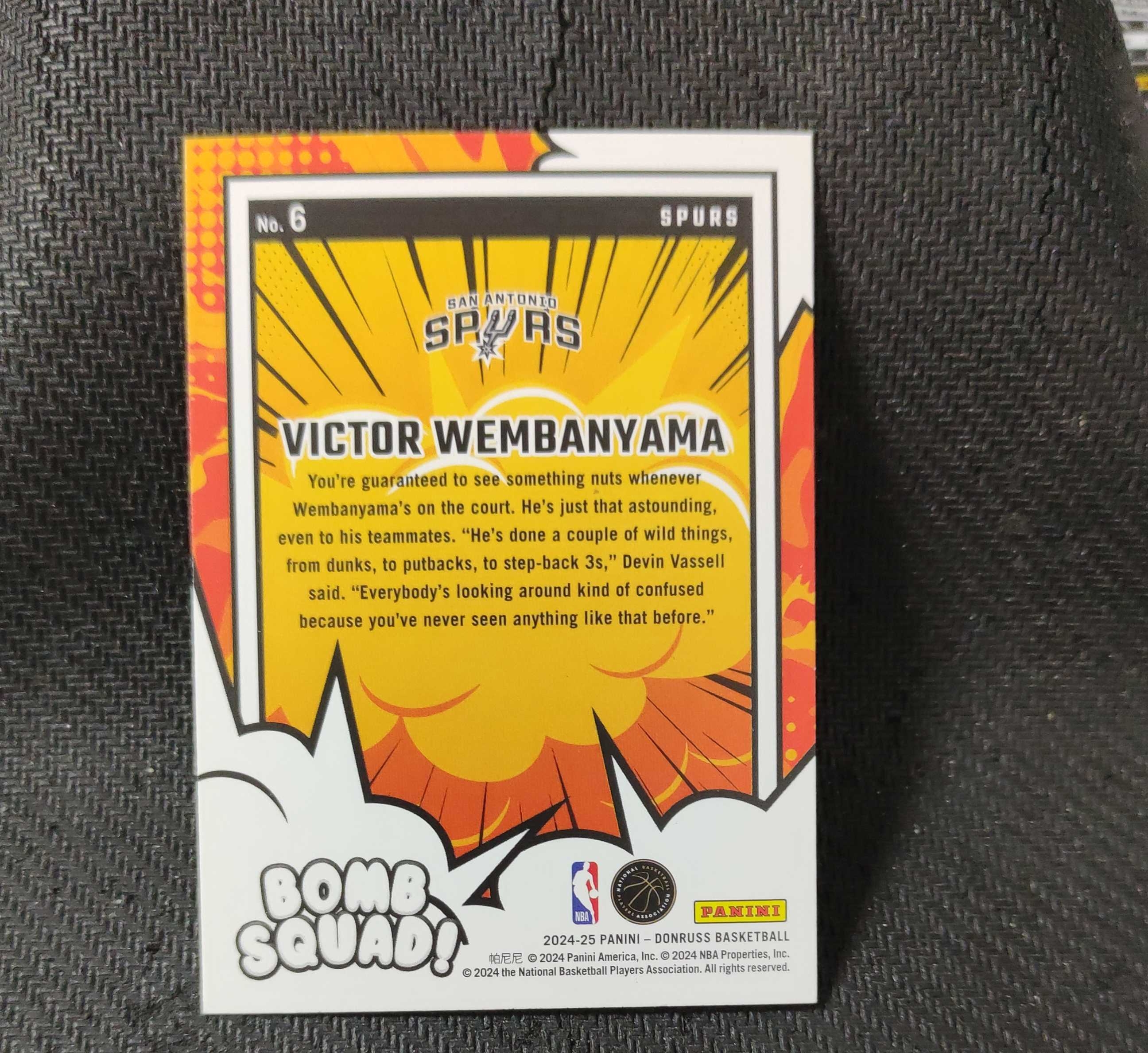 2024-25 Panini Donruss Victor Wembanyama 维克托 文班亚马 bomb squad特卡 马刺队 收藏必备 可累计 收卡