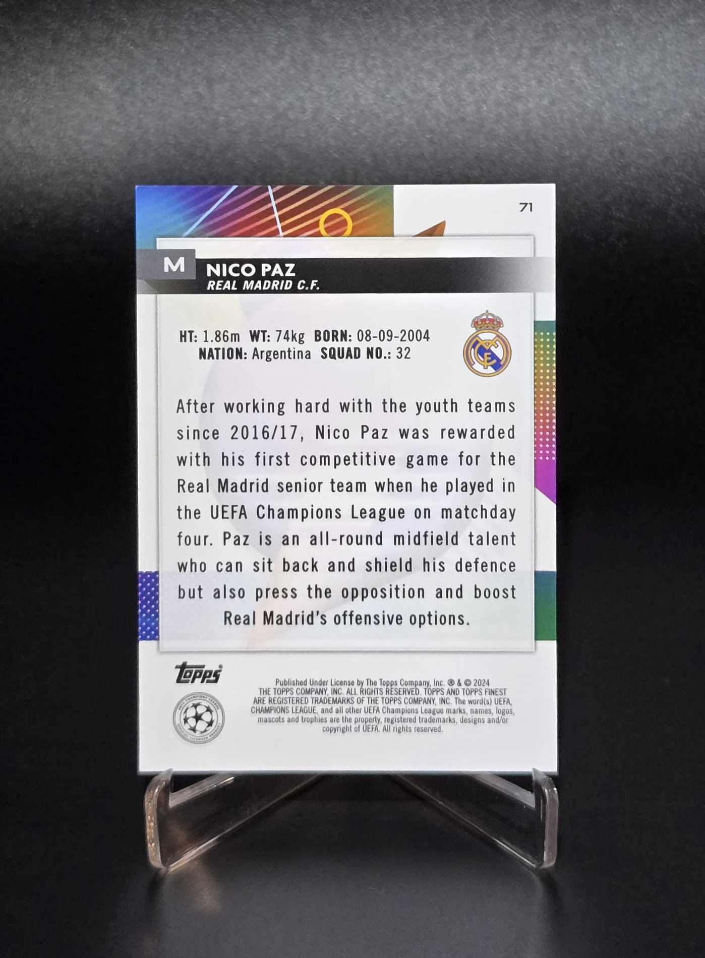 2024 Topps Finest NICO PAZ RC 【卡汇拍卖】 尼科帕斯 皇马 RC新秀 /199编 意甲 科莫 状态火热 回购 阿根廷 未来可期 收藏佳品 卡品如图