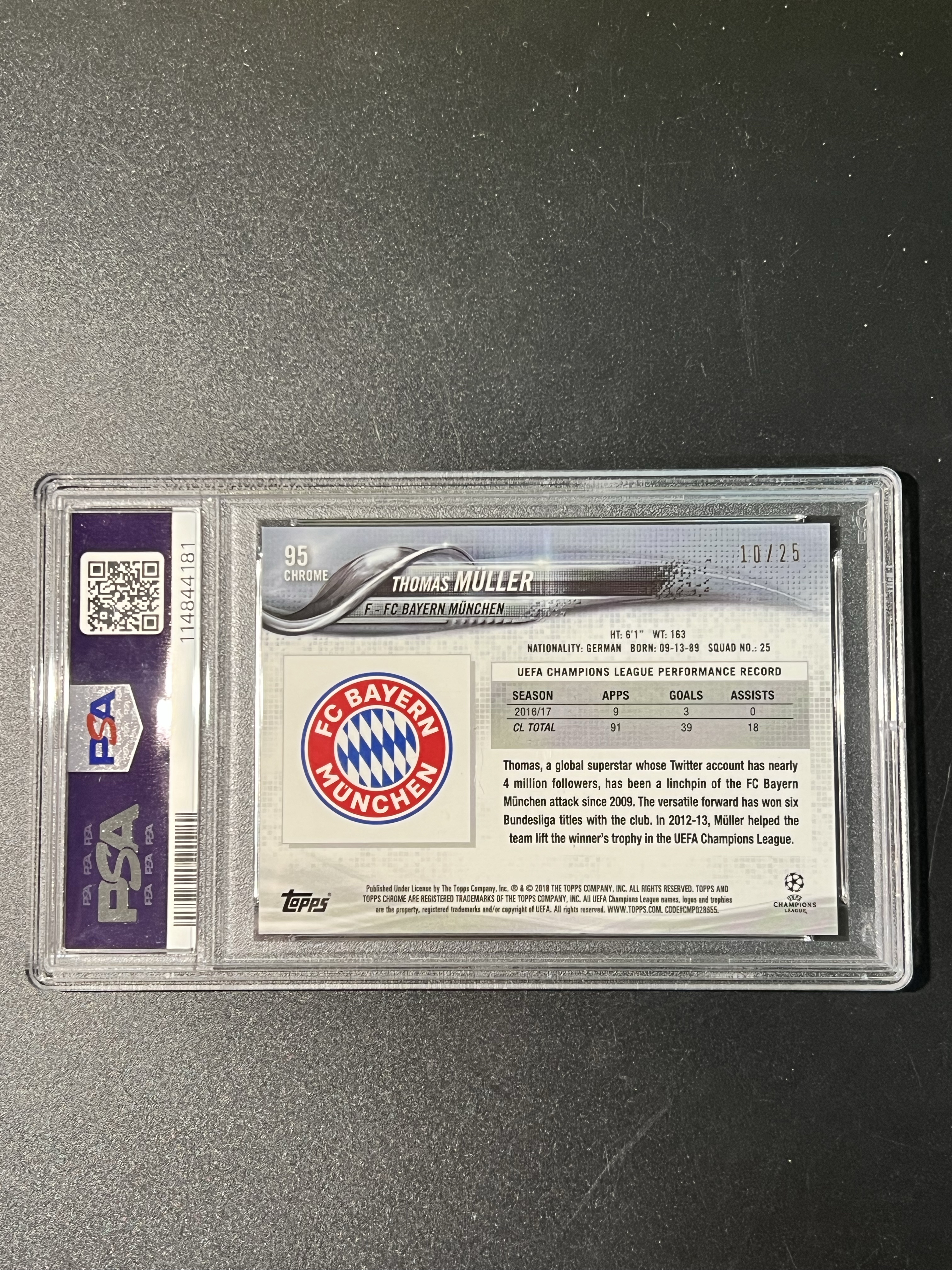 2017-18 Topps Chrome 元年TC欧冠 拜仁慕尼黑 Thomas Muller 托马斯 穆勒 二娃 10/25编 橙折 PSA10分 收藏必备