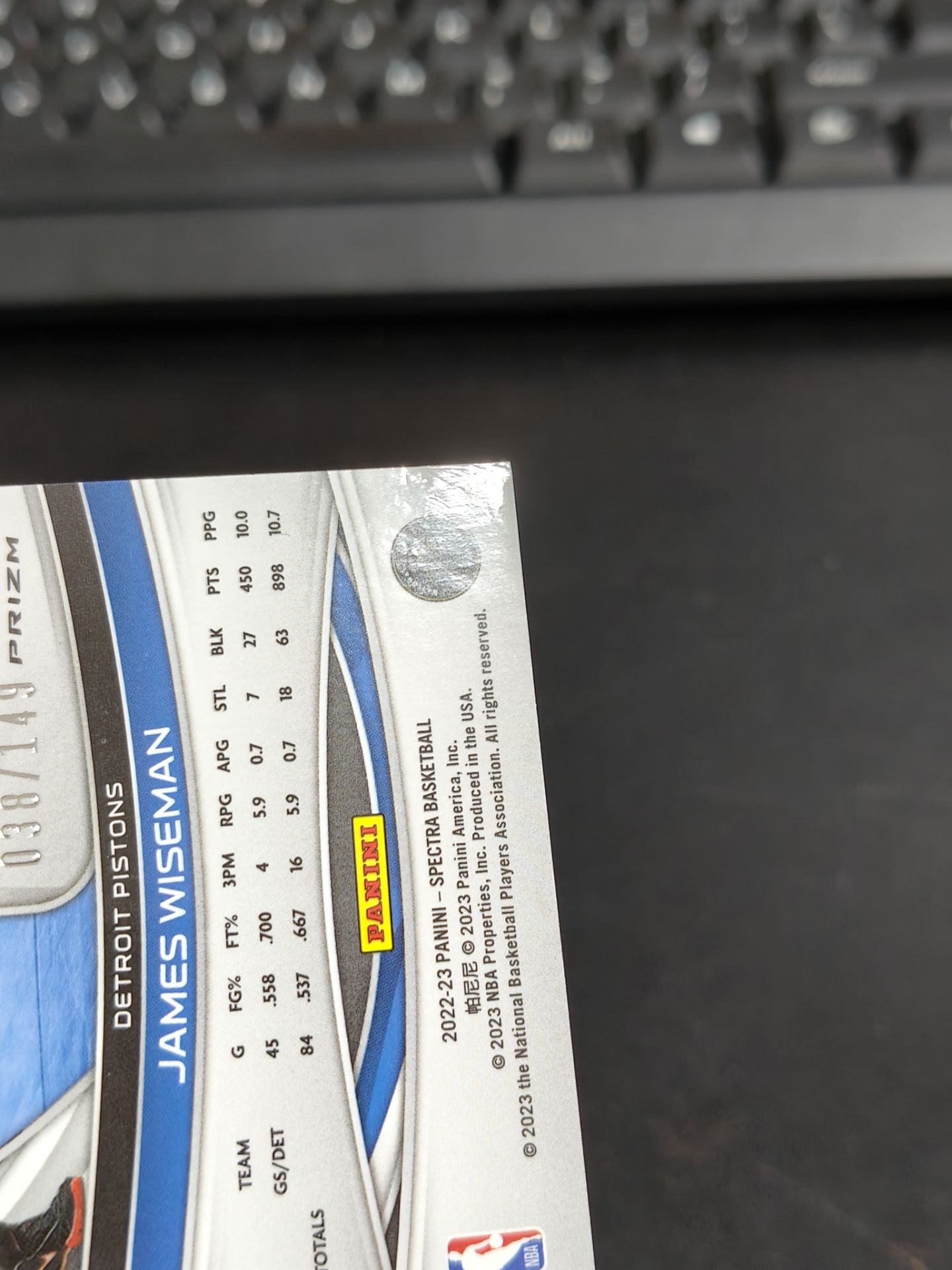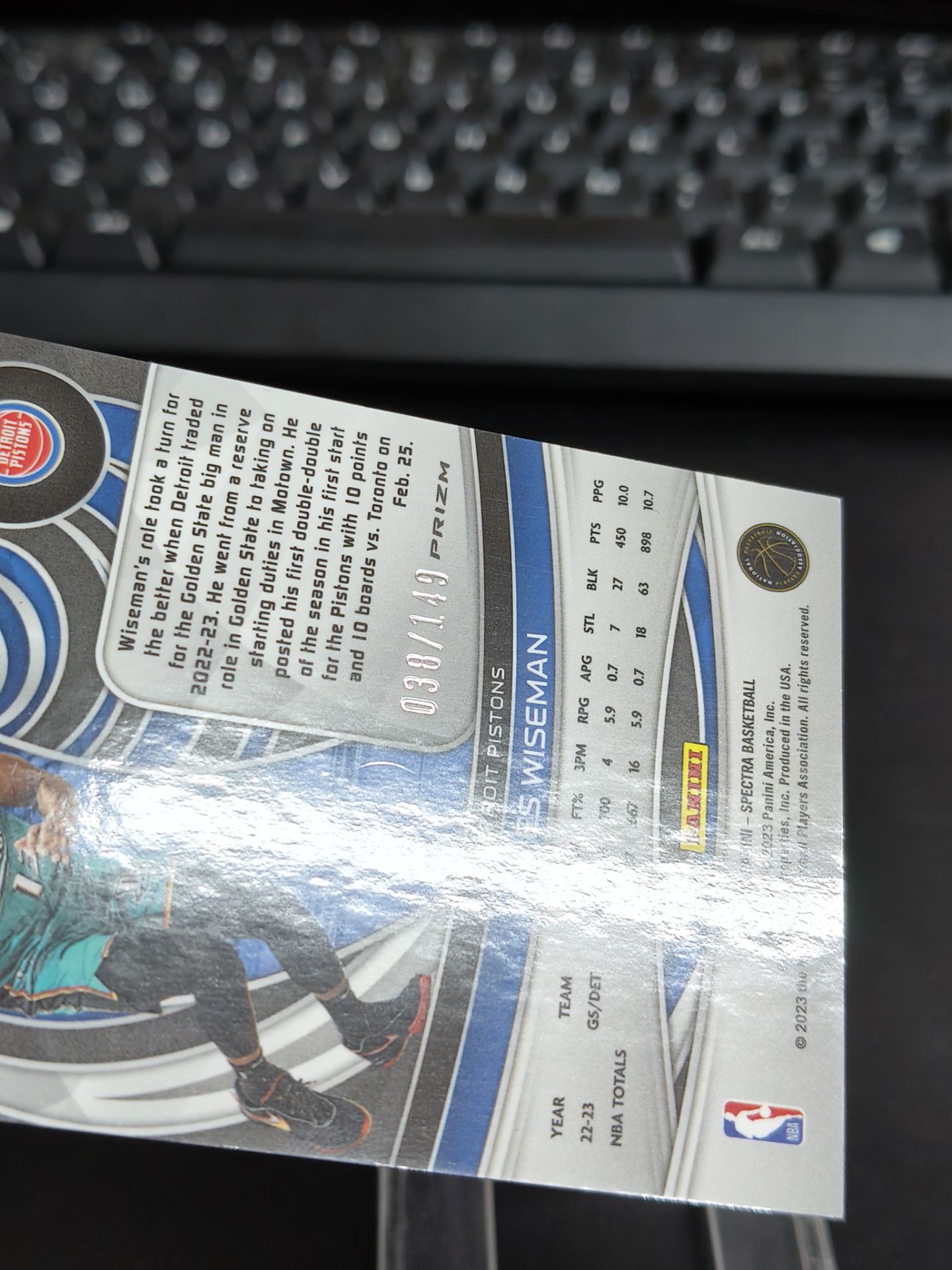 【浩行拍卖 截标预付82%】2022-23 panini spectra James wiseman 光谱 活塞 詹姆斯 怀斯曼 脉冲折 折射 38/149编 专收必备 瑕疵看图「城府223」1123M01夢