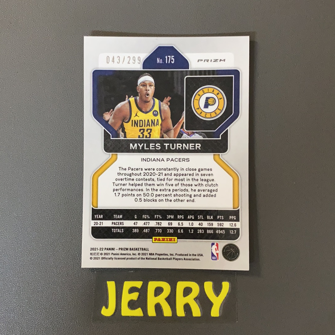 2021-22 Panini Prizm Myles Turner pz 步行者 迈尔斯 特纳 043/299编 红折 卡品如图【Vay】