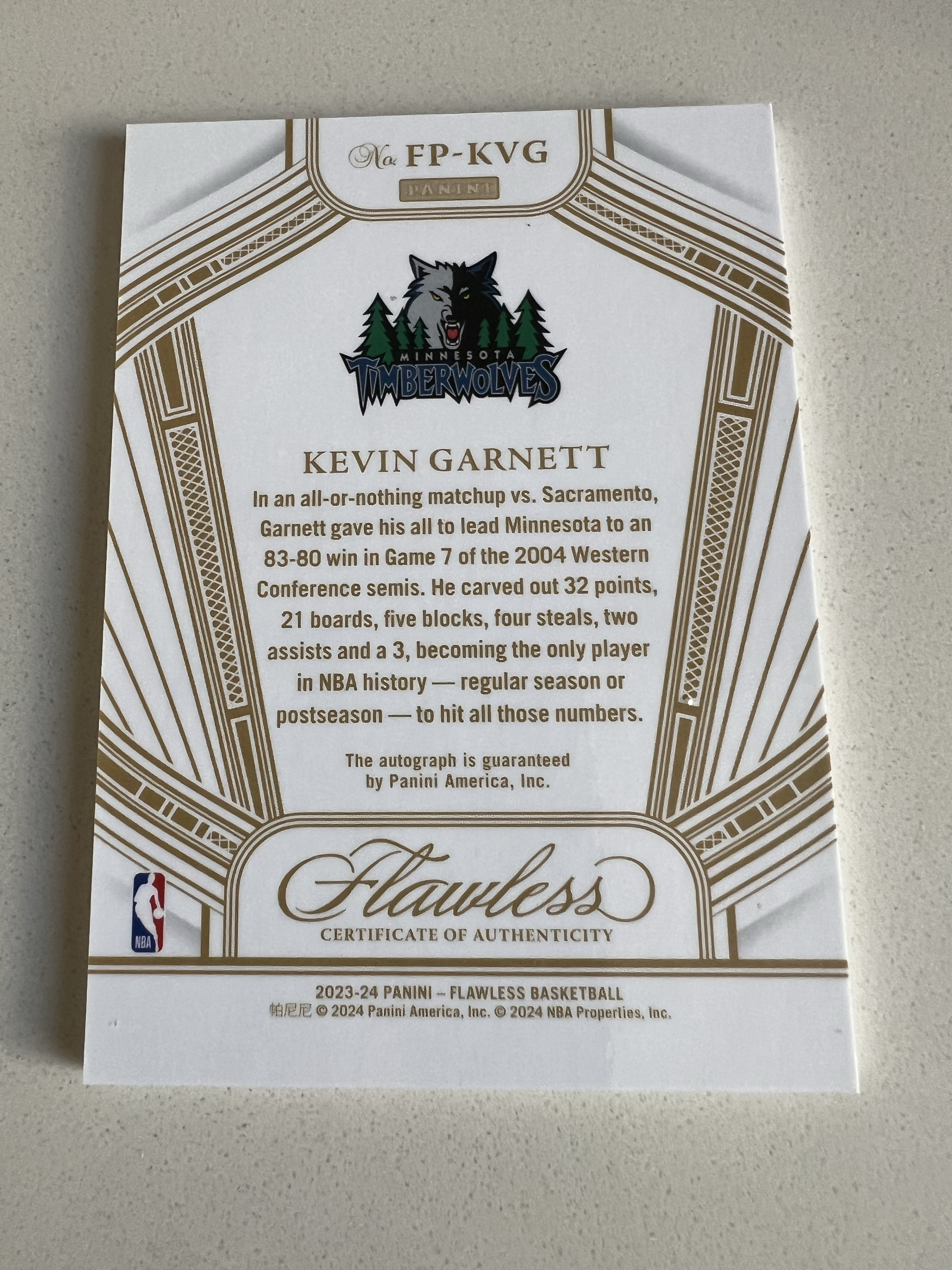 2023-24 Panini Flawless Kevin Garnett 帕尼尼 手提 狼王 凯文 加内特 签字 墨迹好25编卡签,森林狼 皮尔斯雷阿伦兄弟 对飙科比 记录西部决赛抢七得到32分