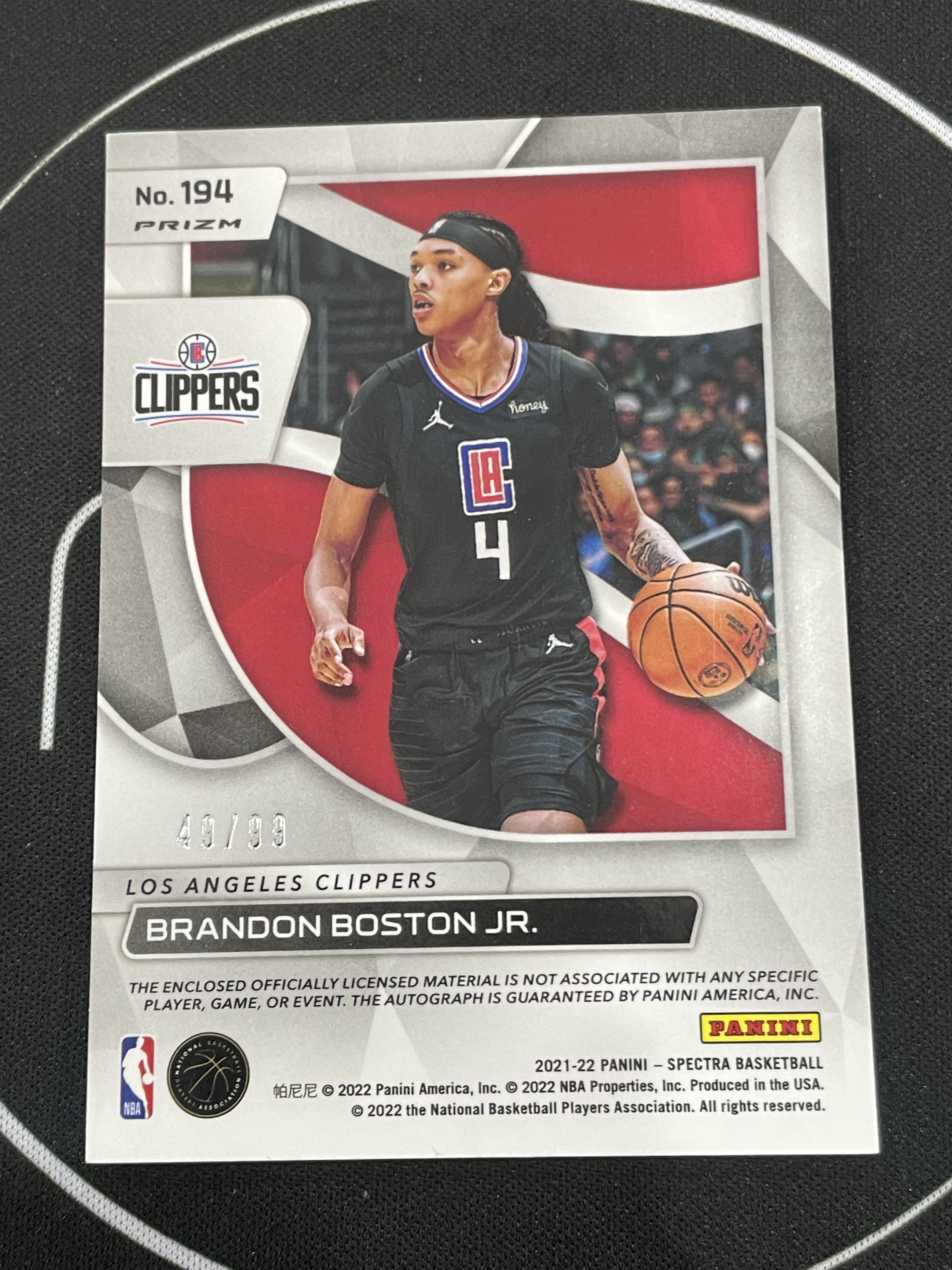 2021-22 Panini Spectra Brandon Boston Jr. RC 【小哈拍卖Z22】光谱系列 小布兰登波士顿 新秀 49/99编 RJA 签字 卡签 投资收藏