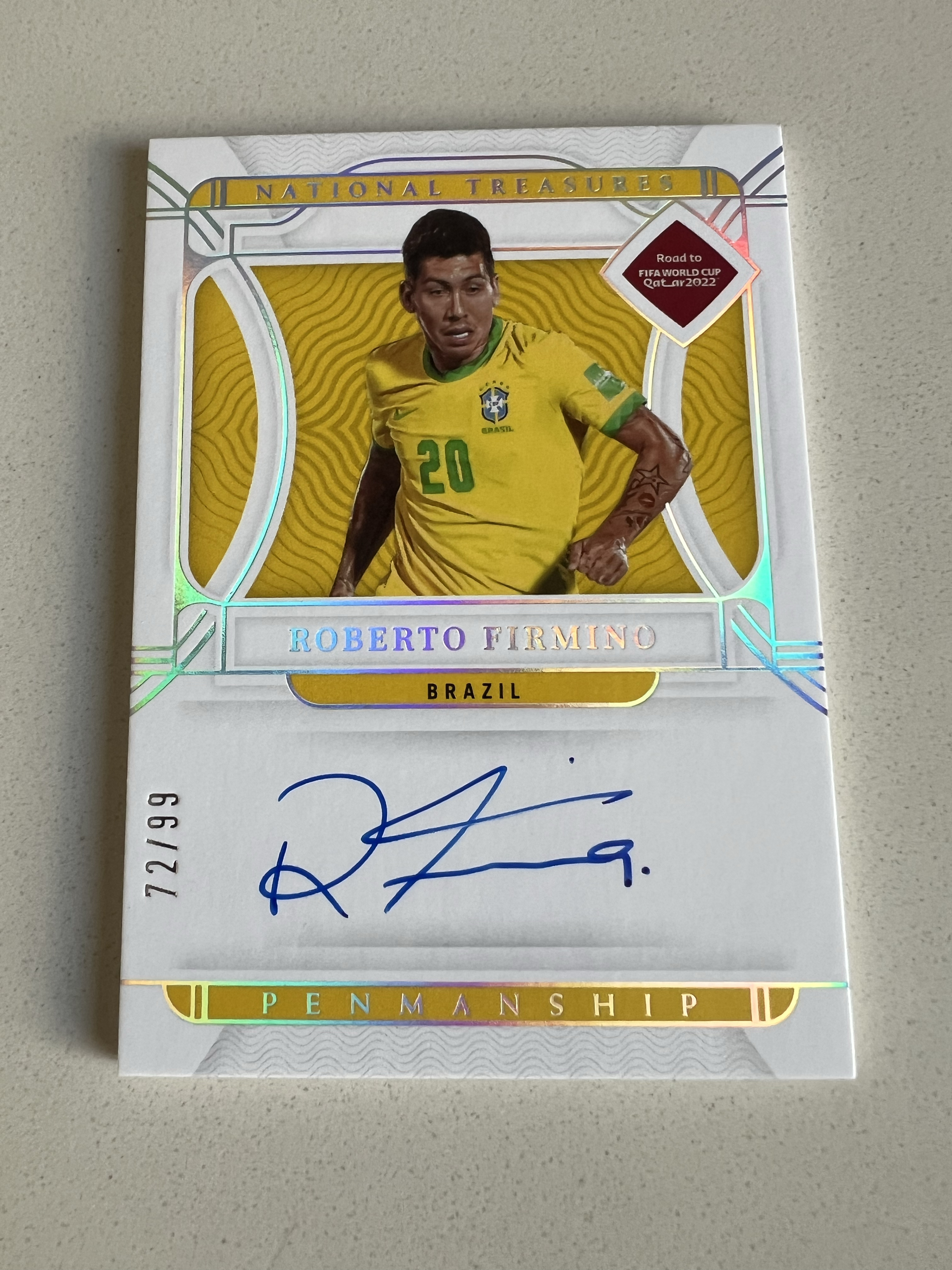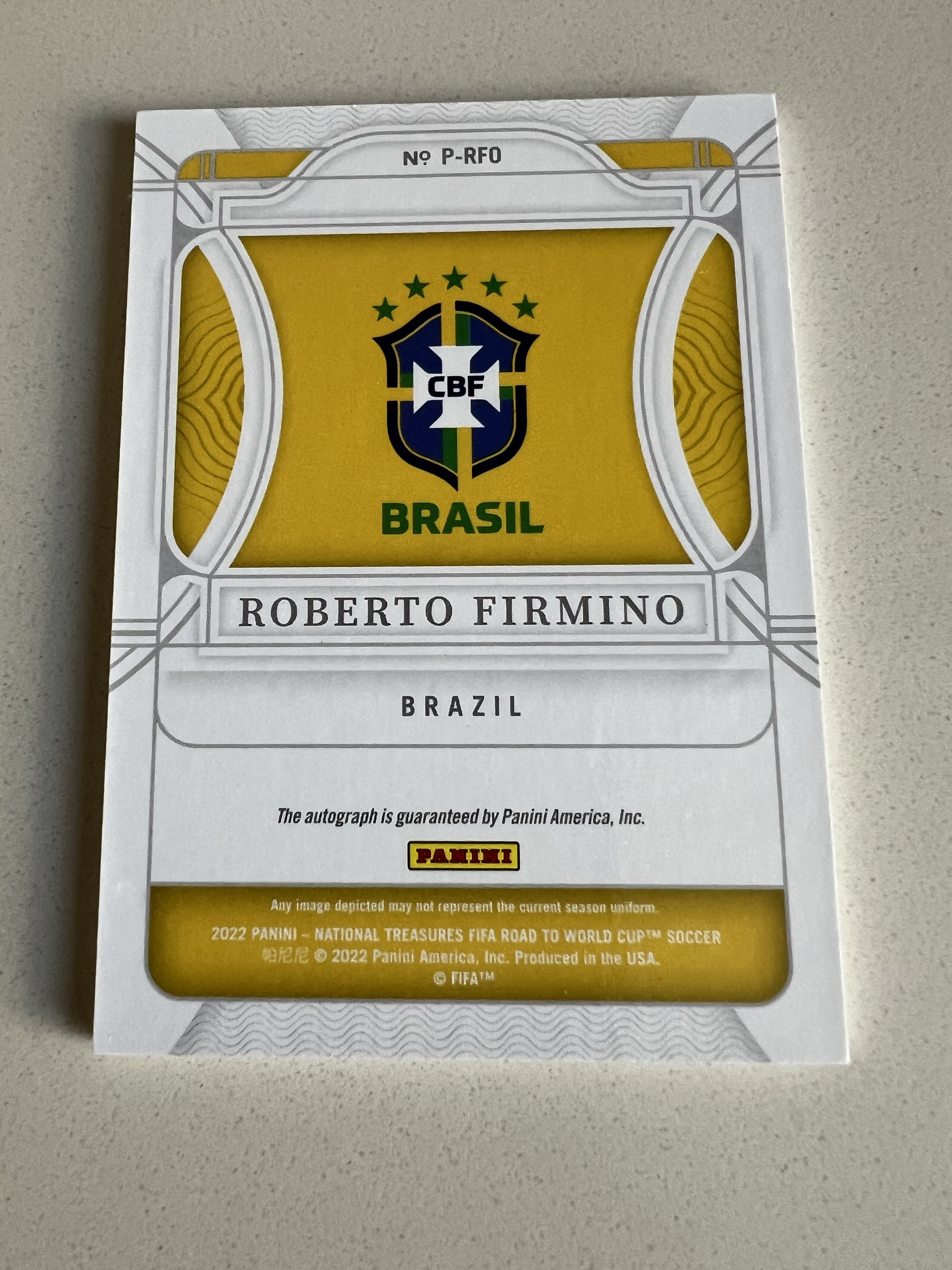2022 Panini National Treasures Roberto Firmino 帕尼尼 国宝 世界杯 菲尔米诺 签字 墨迹好99编卡签,内马尔萨拉赫范戴克队友 巴西利物浦