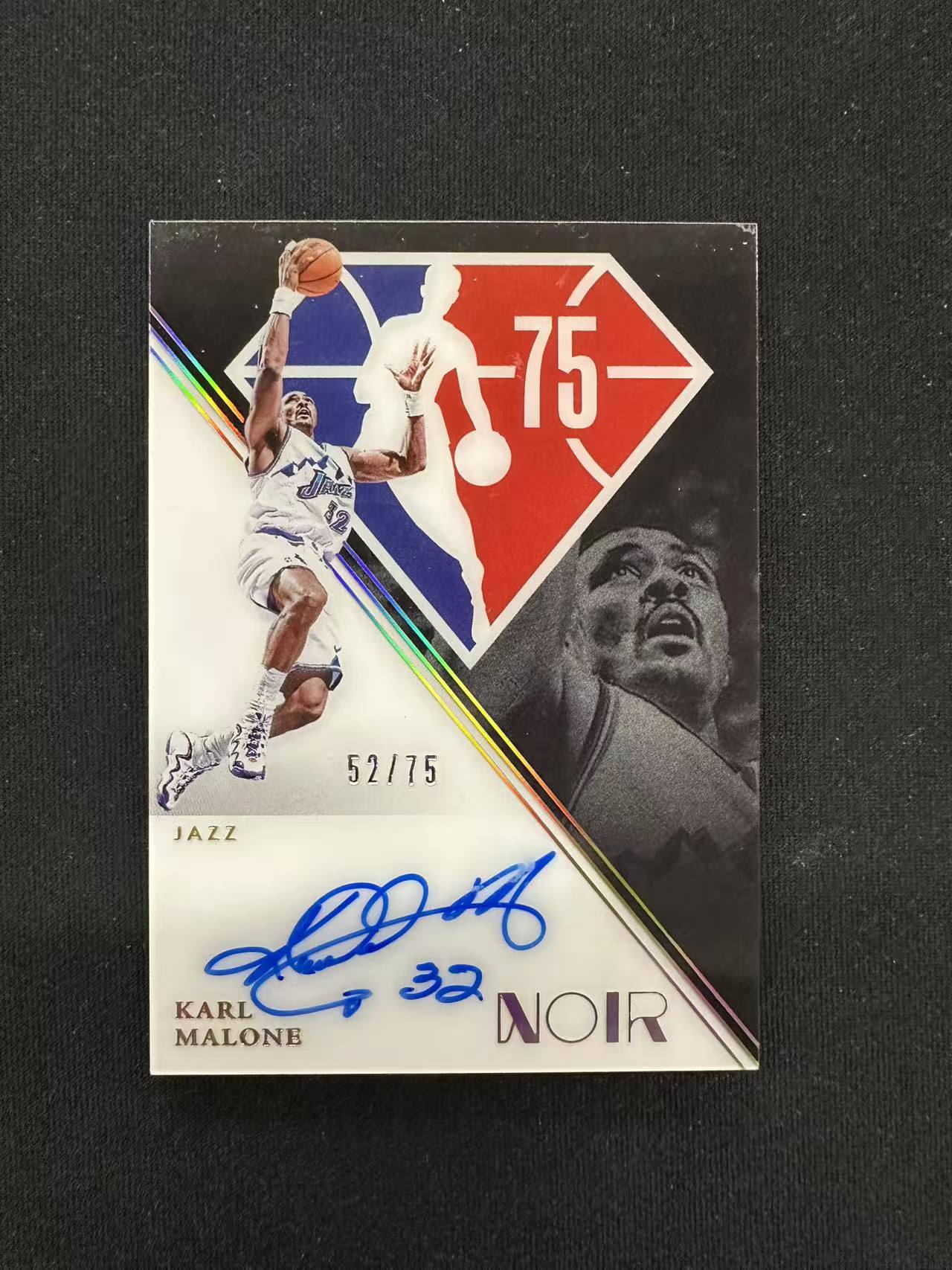 2021-22 Panini Noir Karl Malone 诺尔 卡尔 马龙 邮差 爵士 卡签 签字 背号签 75周年 钻石 75编