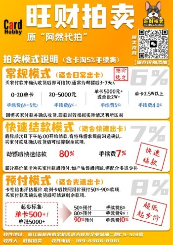 5.为避免纠纷只发卡淘默认地址,如需更改收货地址请在付款环节直接输入。着急发货的,可联系客服VX: WangCaicard。价高需要保价请付款后联系客服说明保价要求,未联系说明要求保价的一律默认发出。