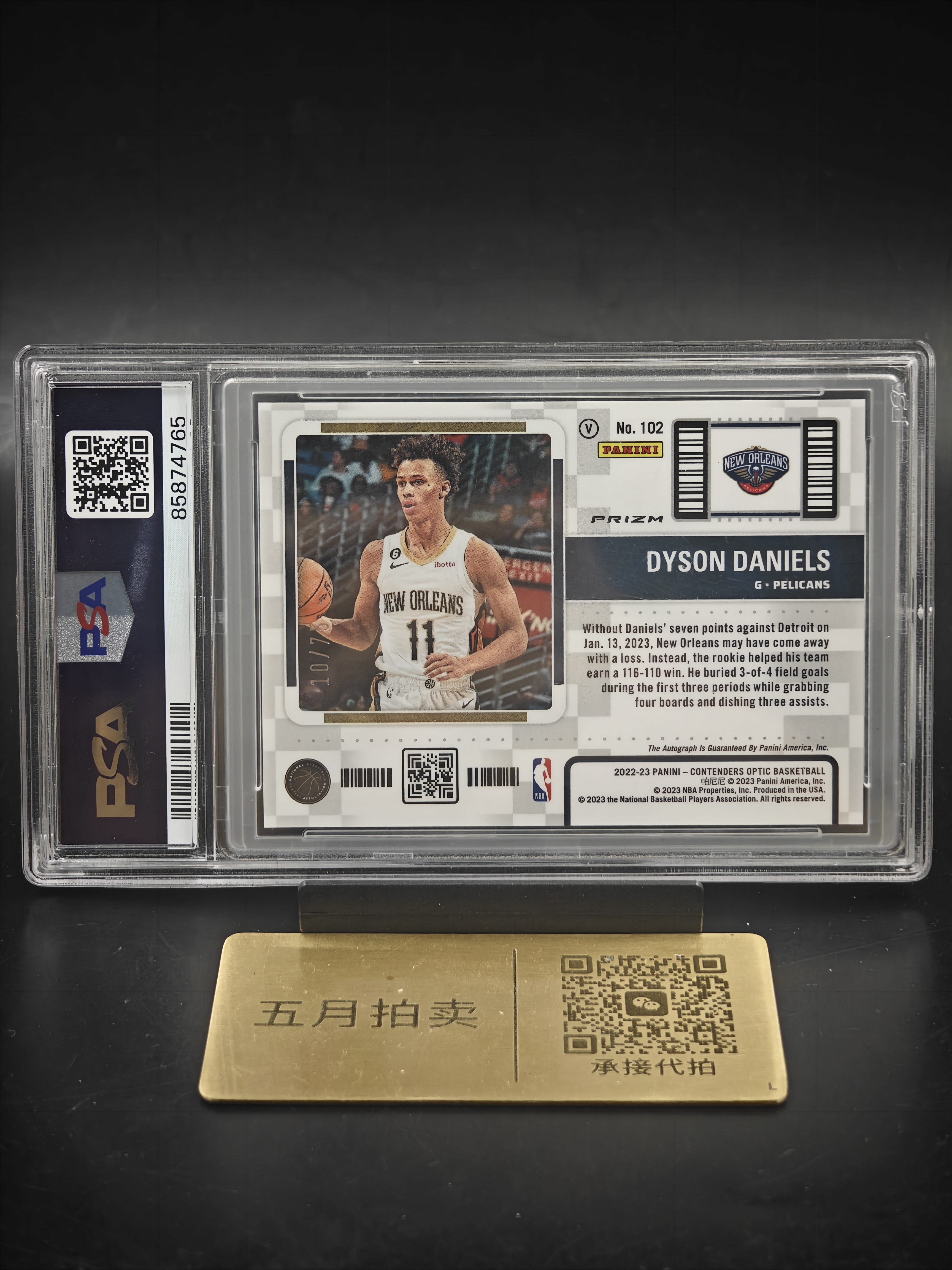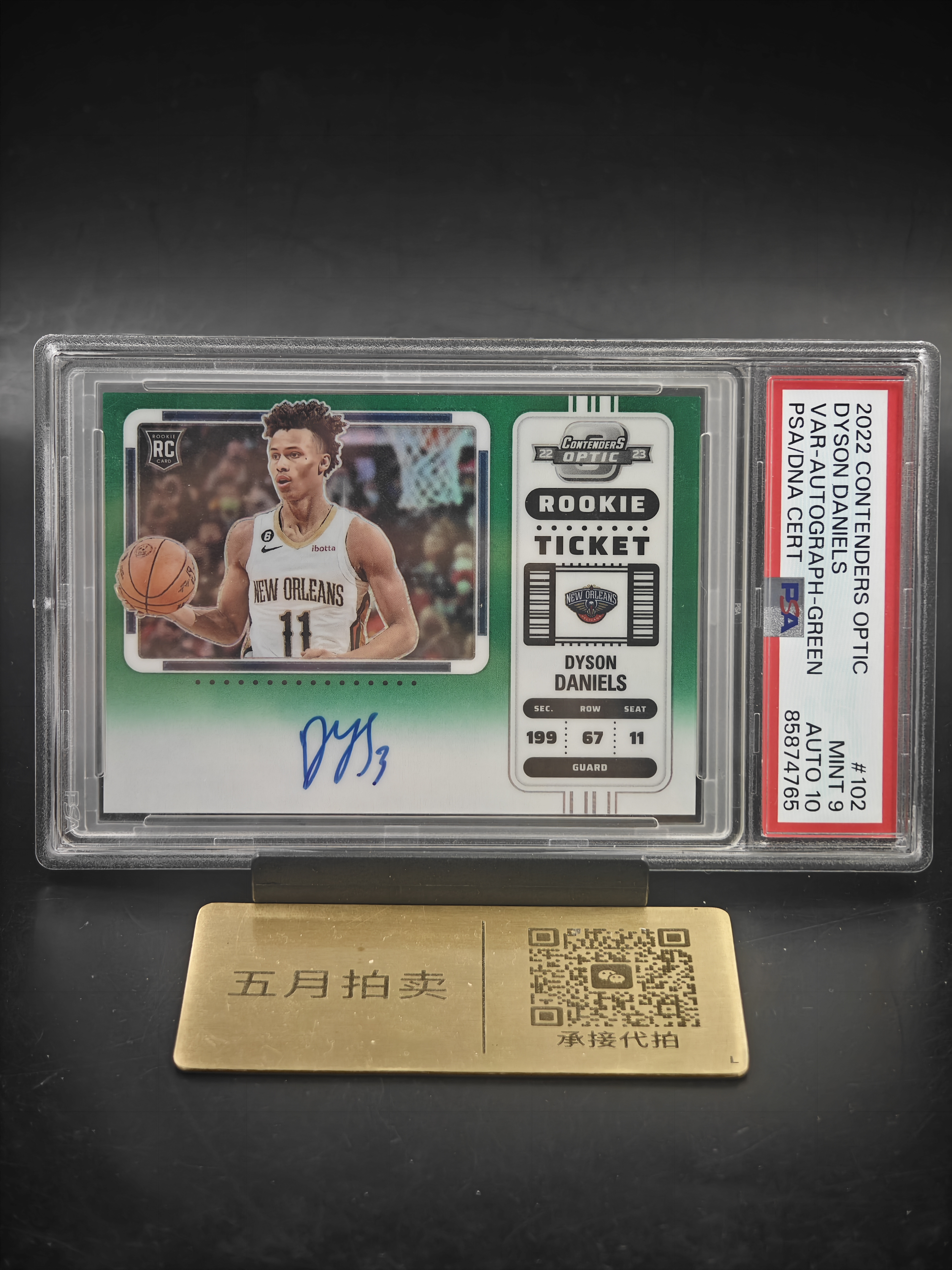 2022-23 Panini Contenders Dyson Daniels RC 【五月拍卖 顺丰空运】球票 鹈鹕 新秀rc 戴森 丹尼尔斯 签字卡签 绿折 75编 PSA9/10分 卡品如图MMM
