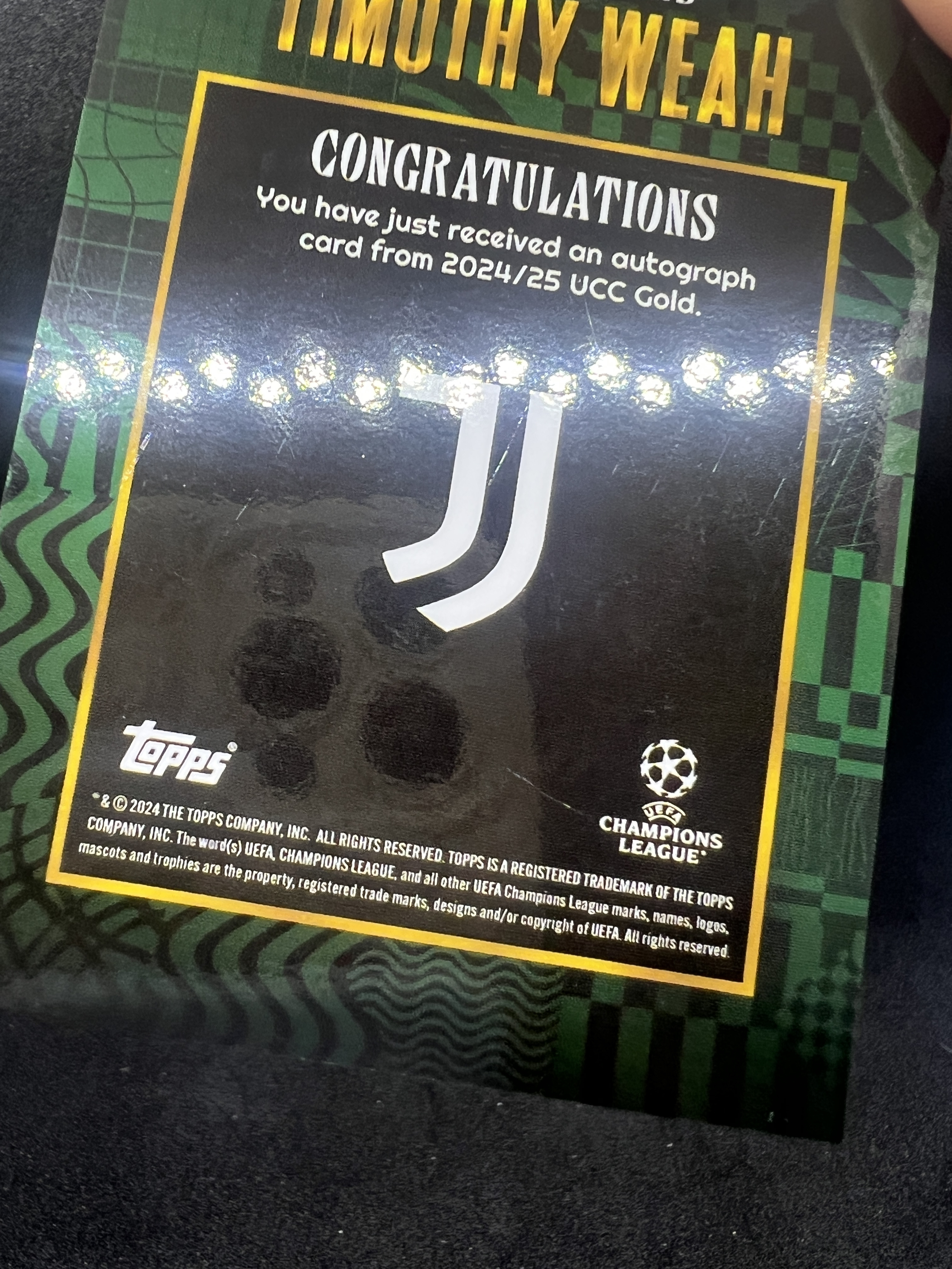 2023-24 Topps x walkertkl Timothy Weah 【严选代拍】美国 里尔 维阿 巴黎 尤文图斯 签字 99编 绿折 微瑕如图 拍前看描述 MFC