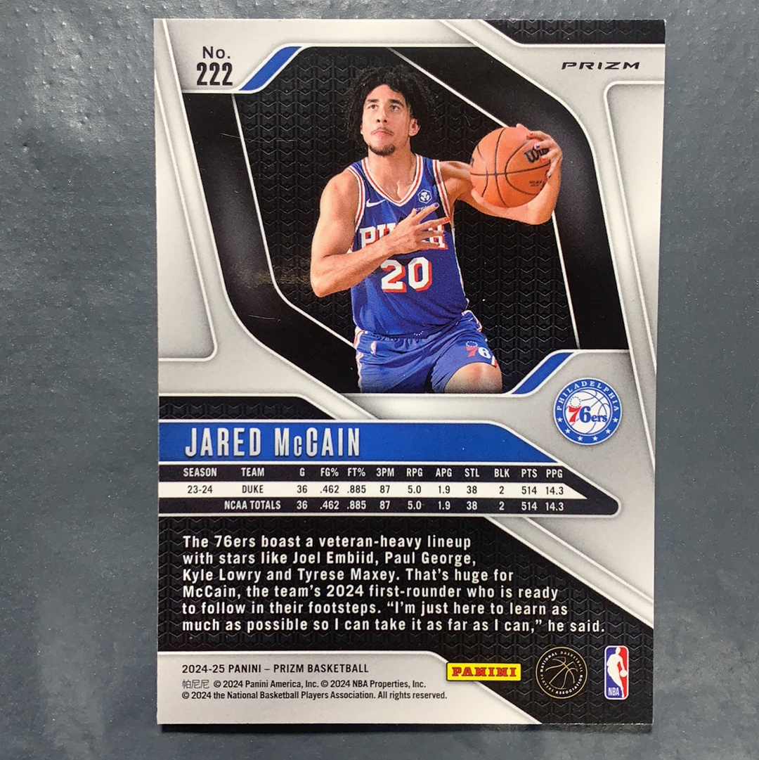 2024-25 Panini Prizm Jared McCain RC Prizm 贾里德 麦凯恩 魔仙哥 RC 新秀 粉碎冰折 76人