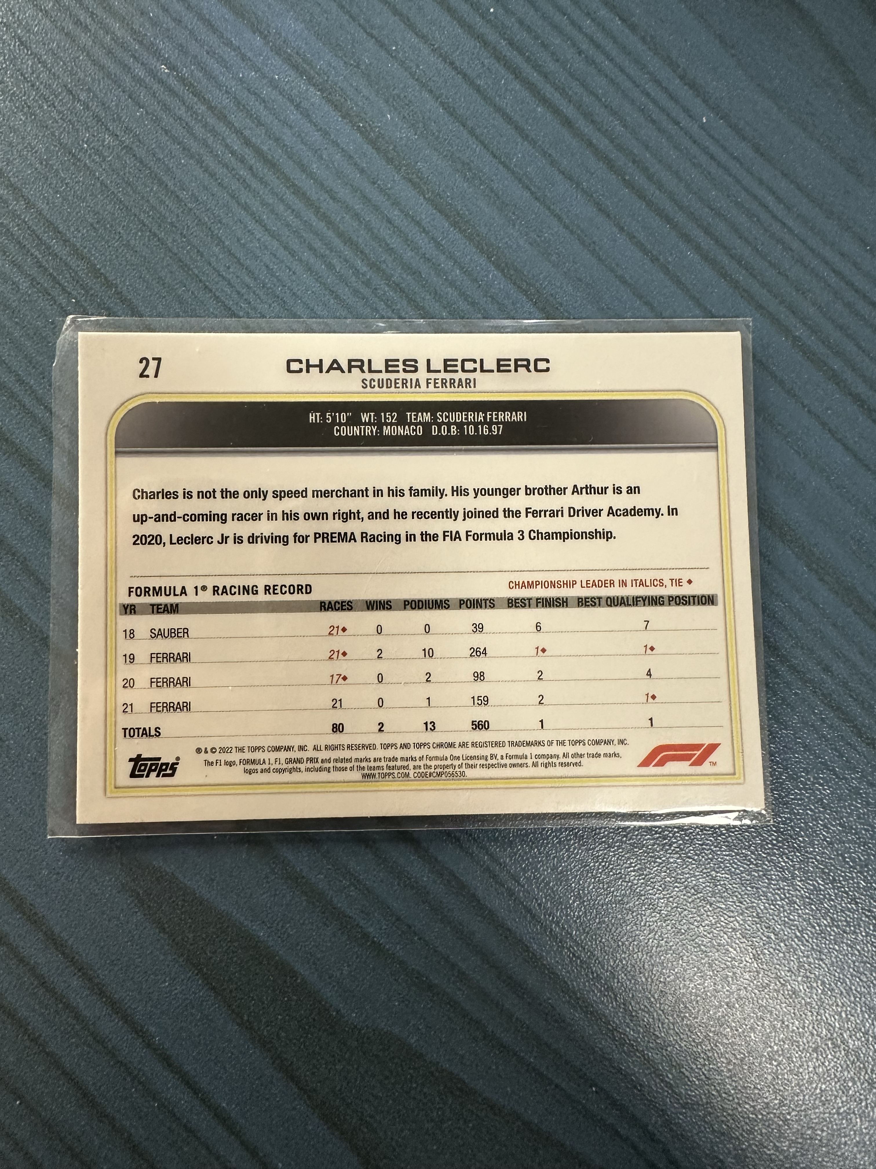 2022 Topps chrome sapphire Charles Leclerc 蓝宝石 查尔斯 勒克莱尔 蓝碎冰折 折射 法拉利 专收必备