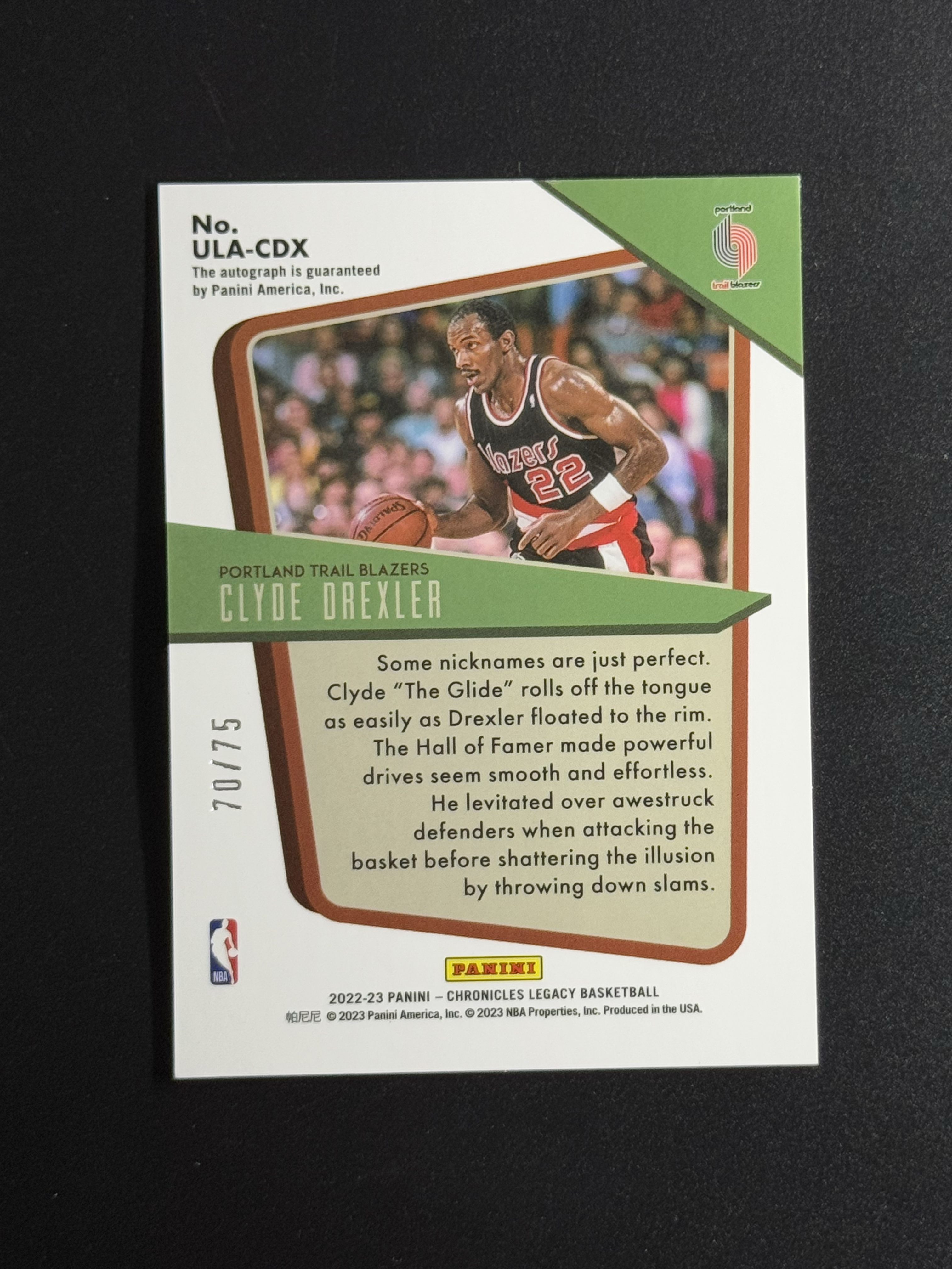 2022-23 Panini Chronicles Clyde Drexler 【小花猪代卖】克莱德德莱克斯勒 编年史 75编 签字 开拓者 滑翔机(火箭