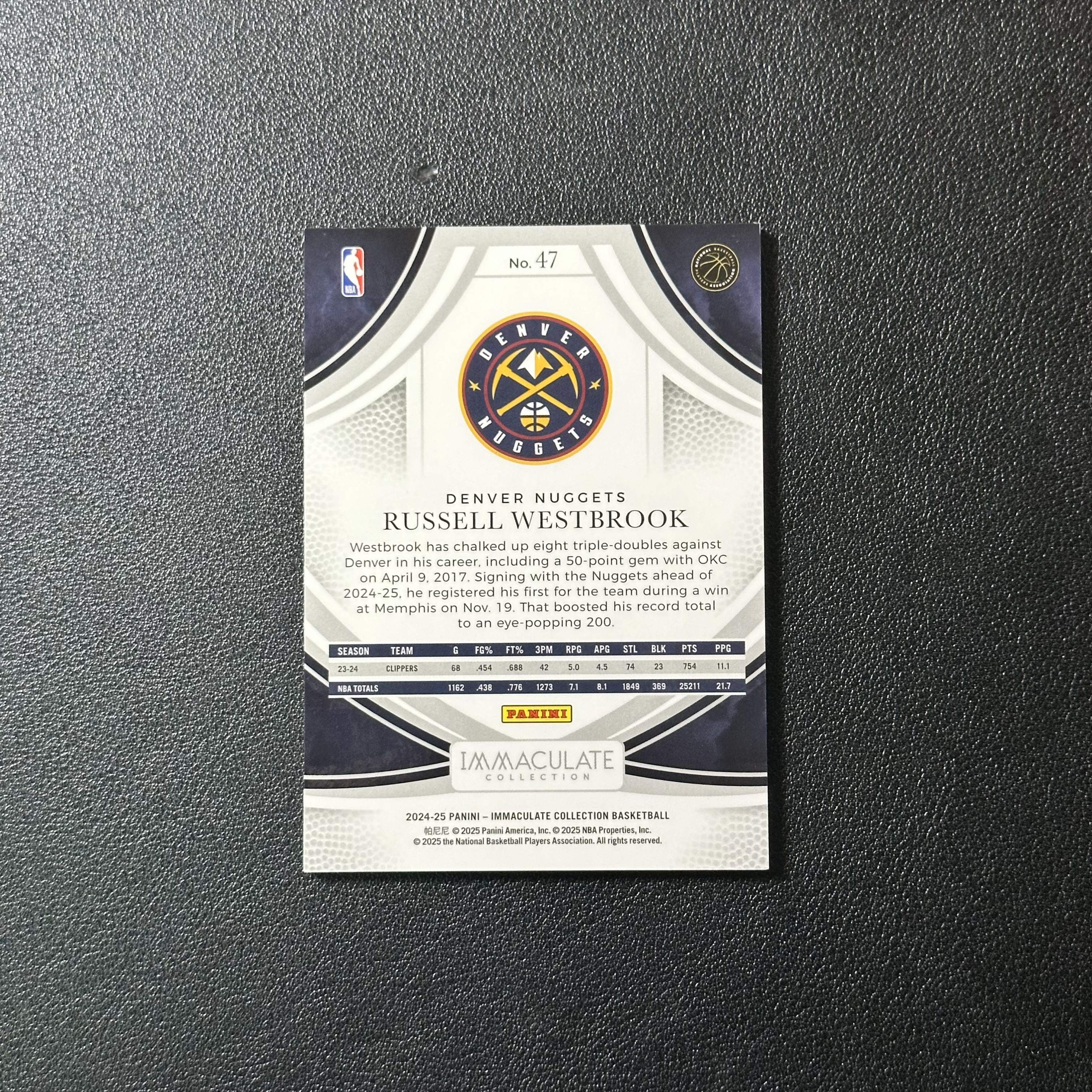 2024-25 Immaculate 掘金 拉塞尔 维斯布鲁克 威斯布鲁克 限量 99编 Base 细节如图 凑套收藏 tk