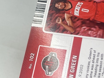 2.参拍:卡品墨迹如图所示(厚卡异形卡等都有正常白边白角,部分系列会有特殊瑕疵),请认真看图后再谨慎出价。不接受任何艺术家买卡,如拍到卡后有任何艺术家行为(包括但不限于在通行卡品里挑瑕疵索要赔偿或退卡等)一律拉黑投诉处理。所卖卡未经描述均为通行品,可能会有细微瑕疵;LOT打包卡不保证每张卡品,可能包含瑕疵,介意勿拍。评级卡壳和原封砖的磨损不包含在卡品范围内;多张上拍卡品通行的同款卡片随机发货。竞拍前可以私聊要细节图,成交后再以有瑕疵、勿拍等理由退卡的一律拒绝,介意者请勿参拍!参拍即视为已读同意!