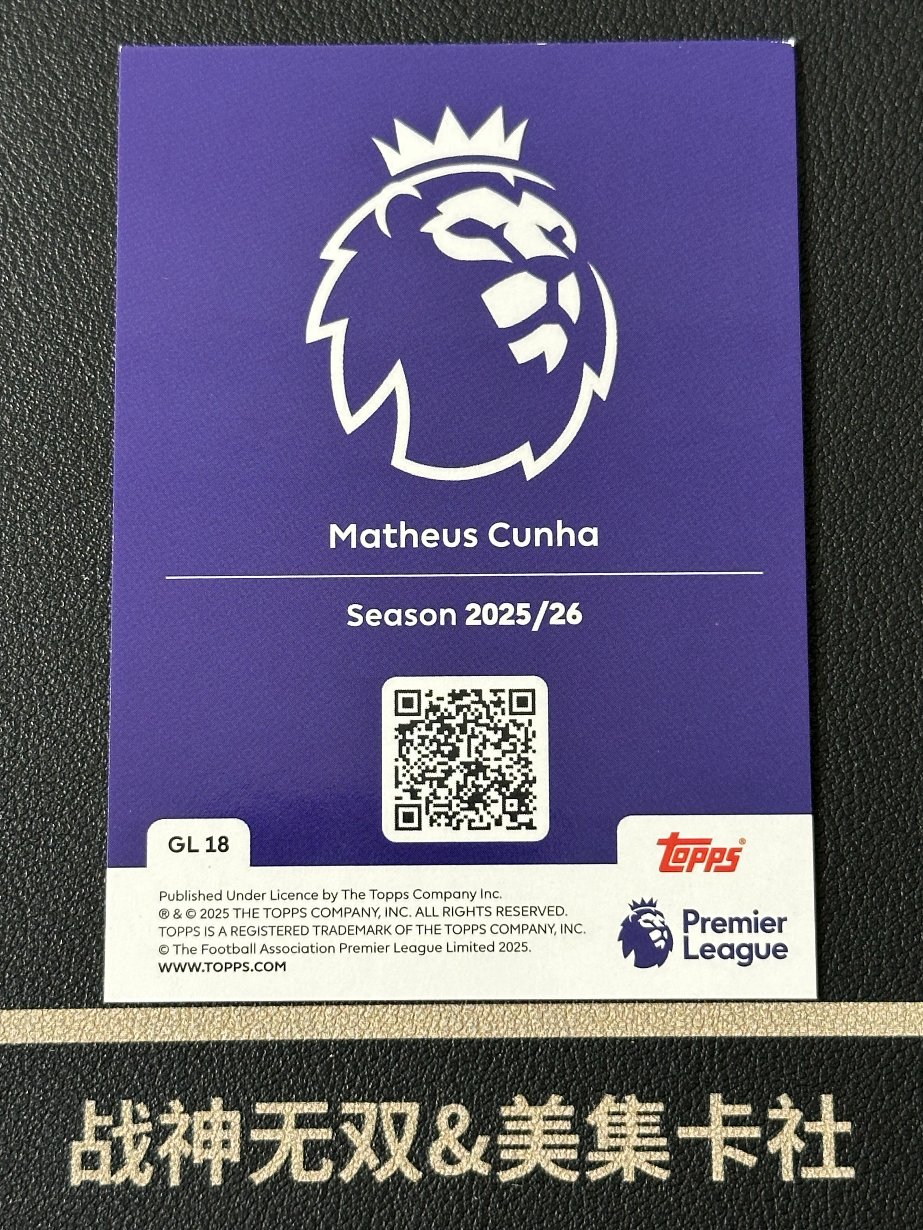 2025-26 Topps Premier Matheus Cunha 库尼亚 曼联 狼队 英超 金狮特卡 Gold 瑕疵 战神无双(凯尼)