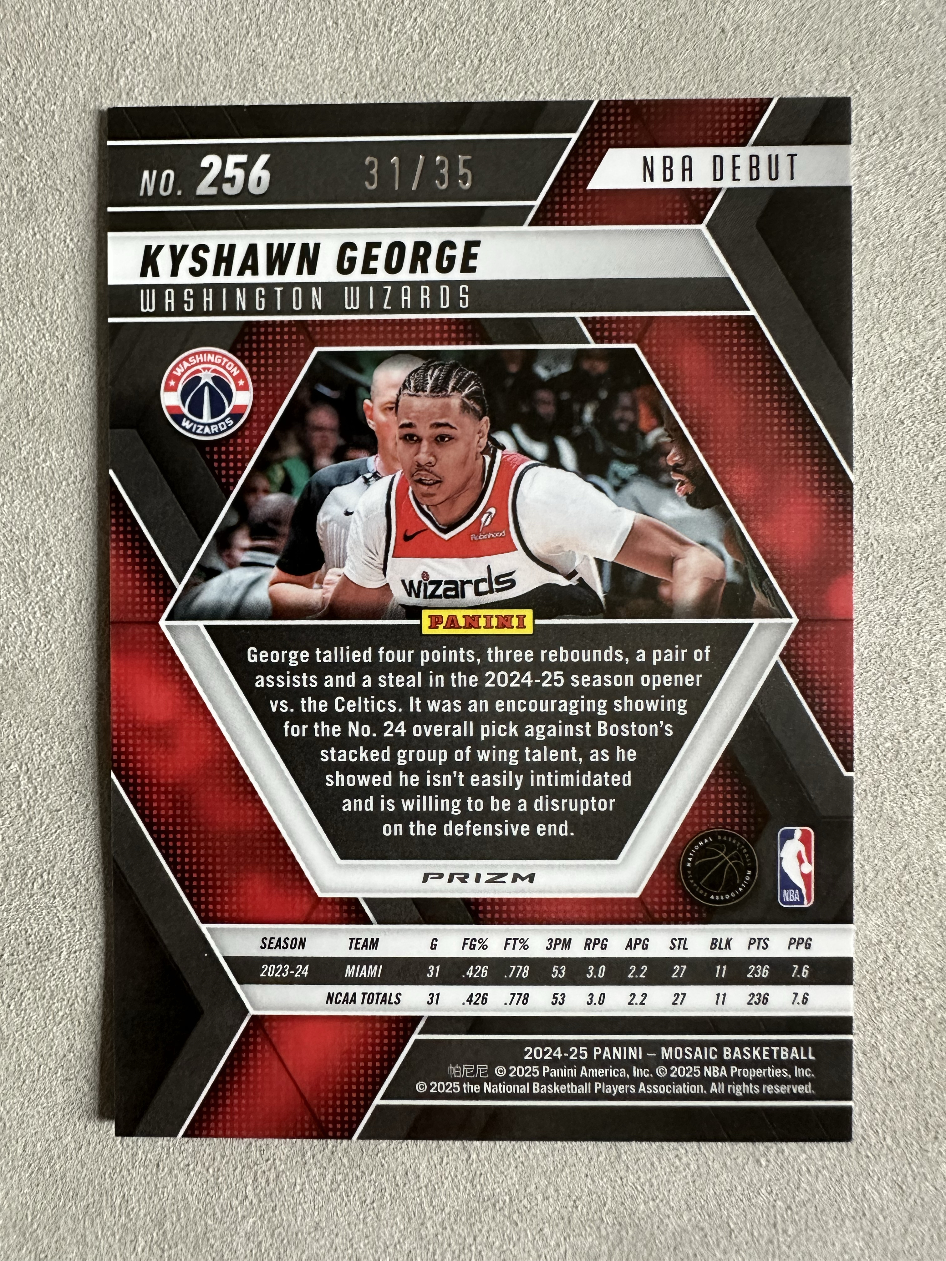 2025 Panini Mosaic Kyshawn George RC 奇才队 新秀 凯肖恩乔治 马赛克 新秀35编 蓝圈圈折射 瑕疵如图 卡量稀少 凑套必备(浩哥12)