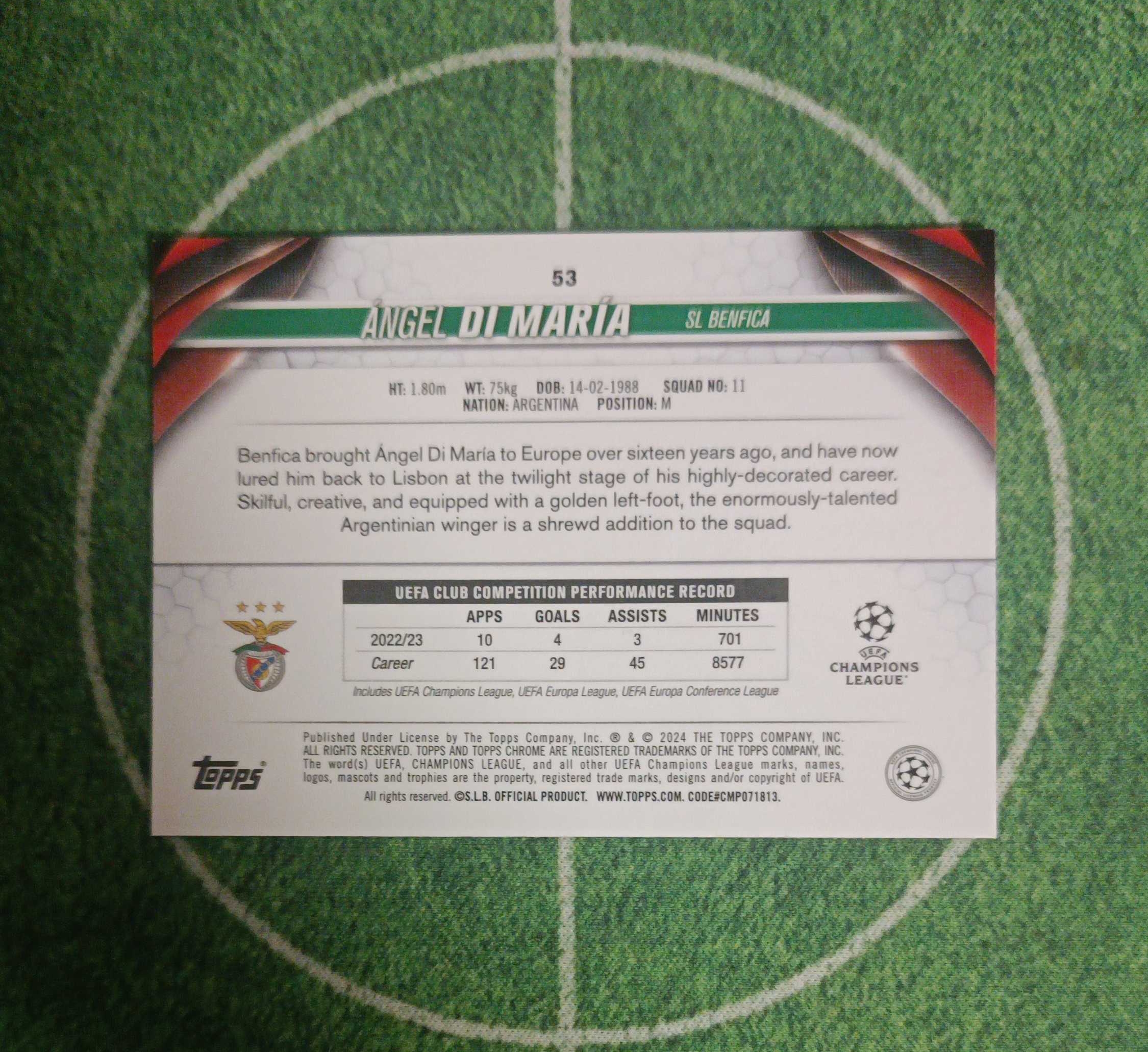 2024 Topps Chrome Ángel Di María 欧冠 本菲卡 天使 迪玛利亚 150编 阿根廷🇦🇷 梅西队友 传奇球星 卡品如图