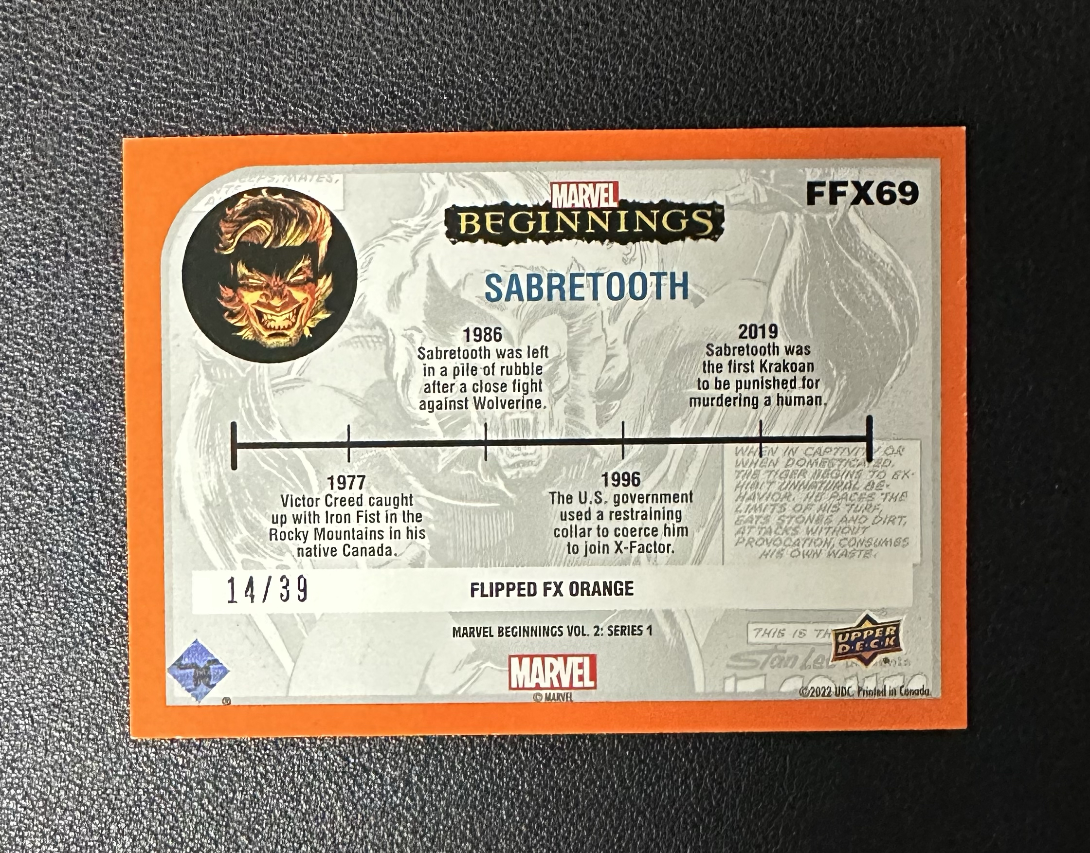 2022 Upper Deck Marvel Beginnings Vol.2 S1 漫威 起源 开端 剑齿虎Sabretooth 14/39编 橙平行 卡品如图