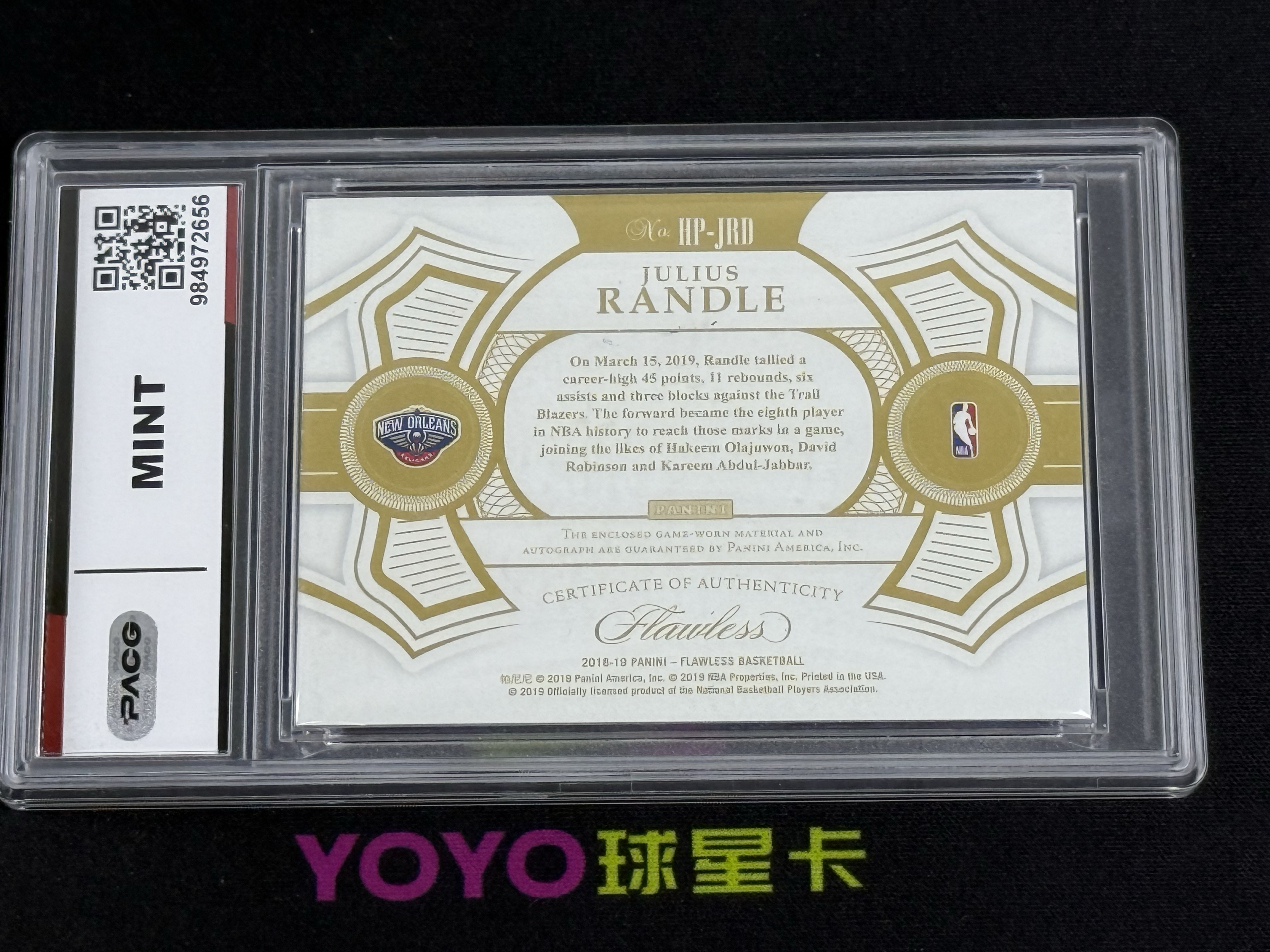 2018-19 Panini Flawless Julius Randle 鹈鹕队 兰德尔 手提 签字 25编卡签 patch 球衣物料 9分评级卡 墨迹卡品如图【YOYO代卖】k