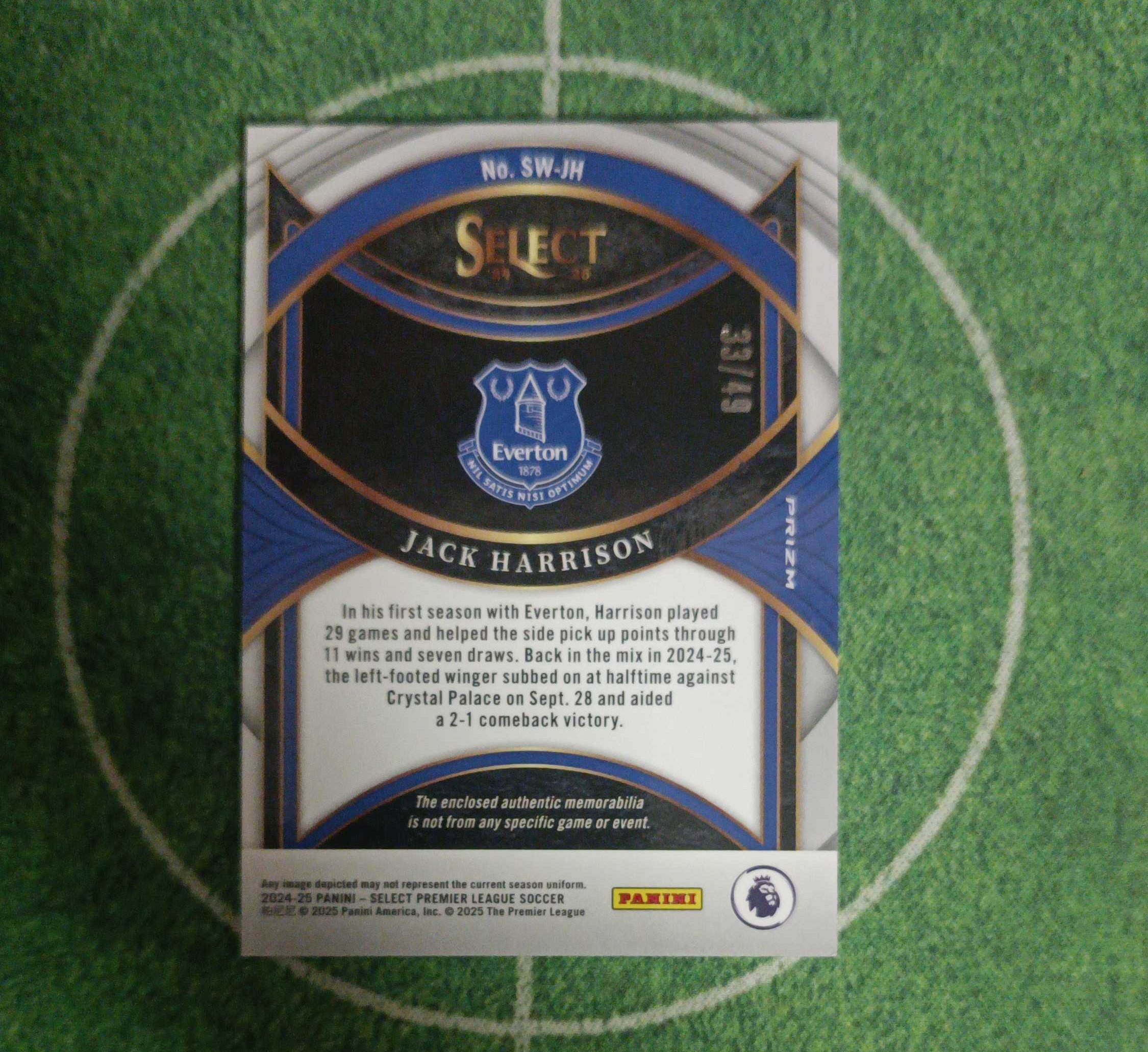 2024-25 Panini Select Jack Harrison 英超 埃弗顿 杰克 哈里森 49编 小窗 物料 球衣切割 卡品如图