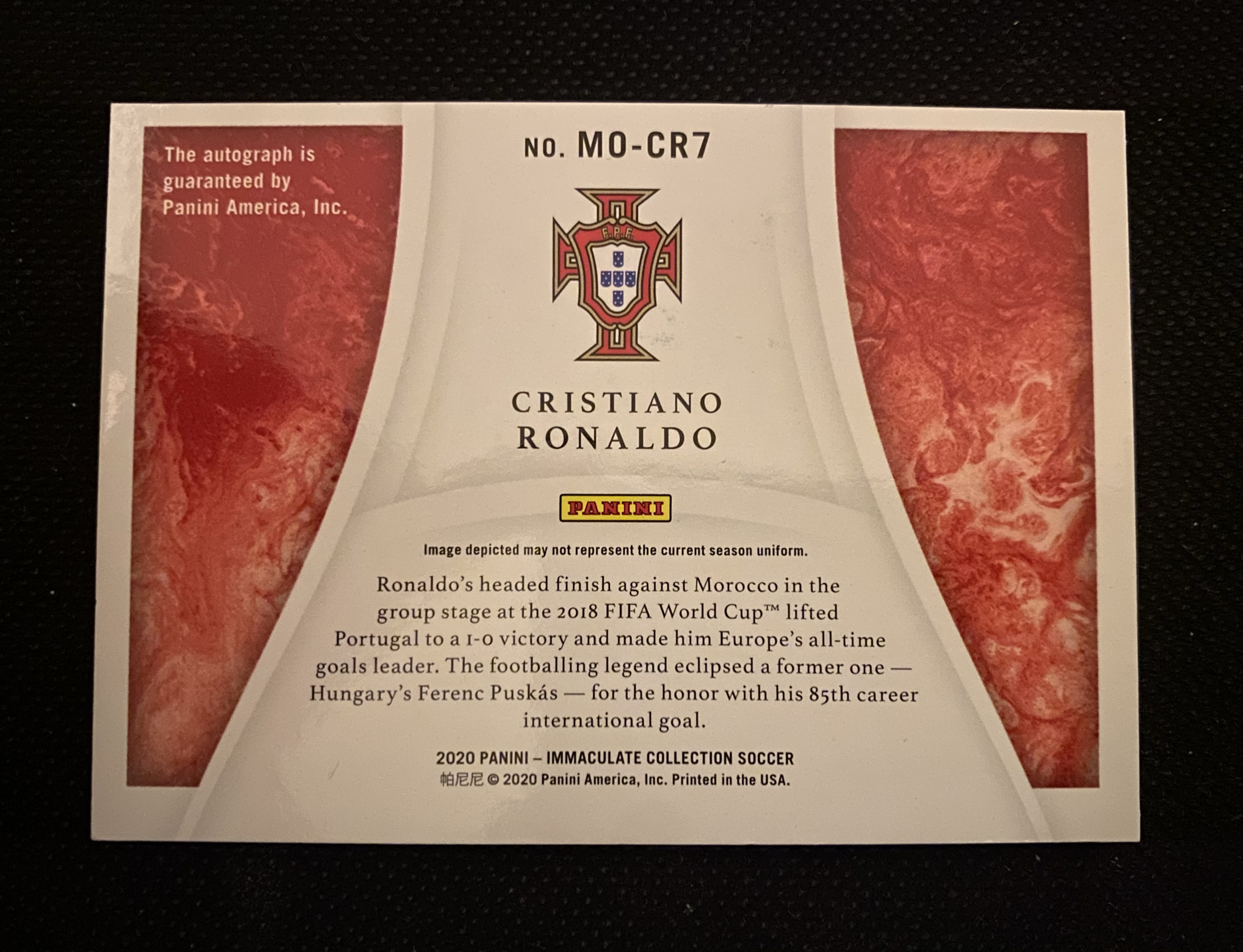 2020 Panini Immaculate Cristiano Ronaldo C罗 葡萄牙 登基时刻 GOALS KING 25编 签字 单一平行 对战摩洛哥登顶欧洲射手王时刻 皇马尤文曼联 绝版