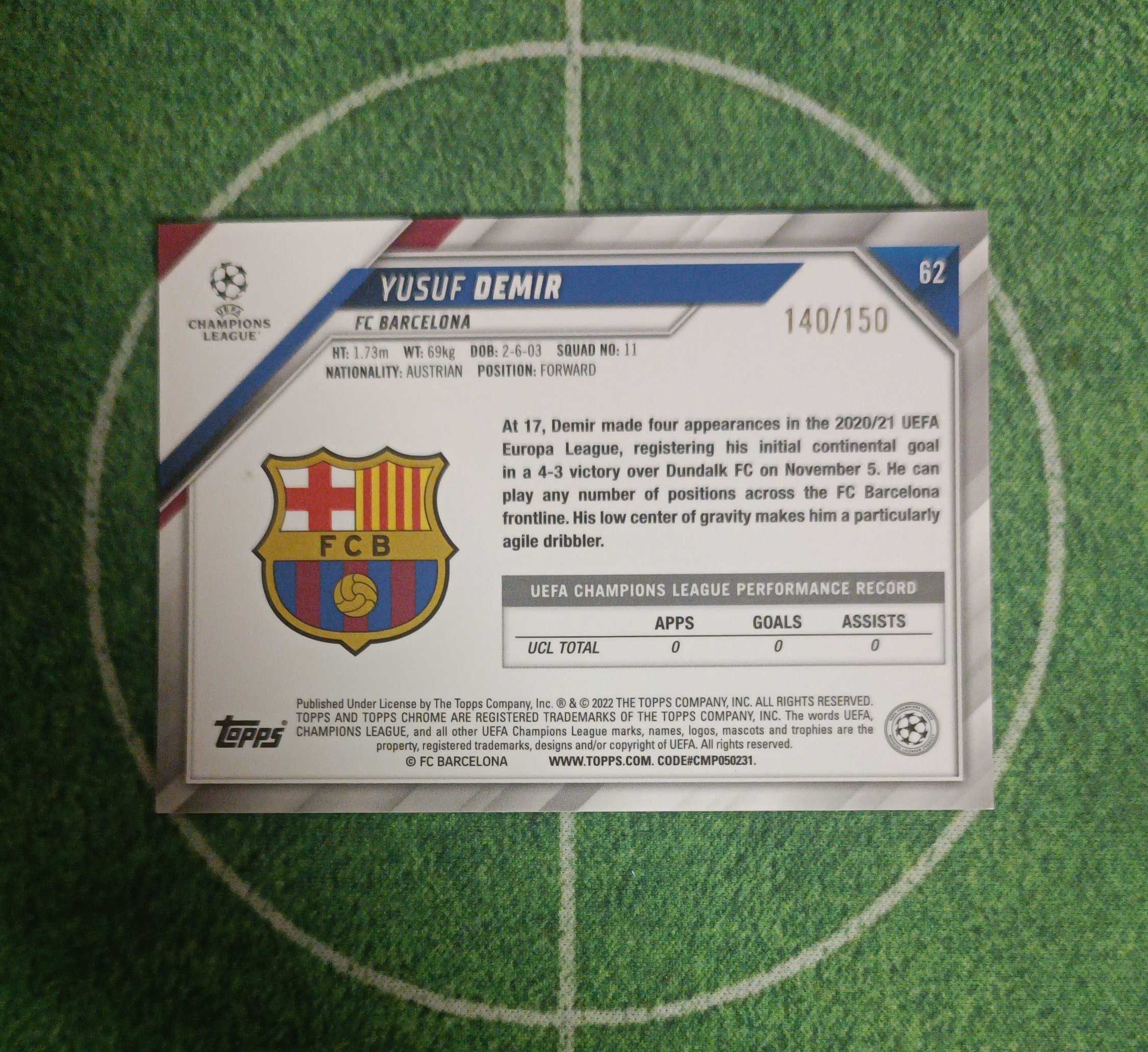 2022 Topps Chrome Yusuf Demir RC 欧冠 巴萨罗那 新秀RC 德米尔 150编 豪门球员 卡品如图