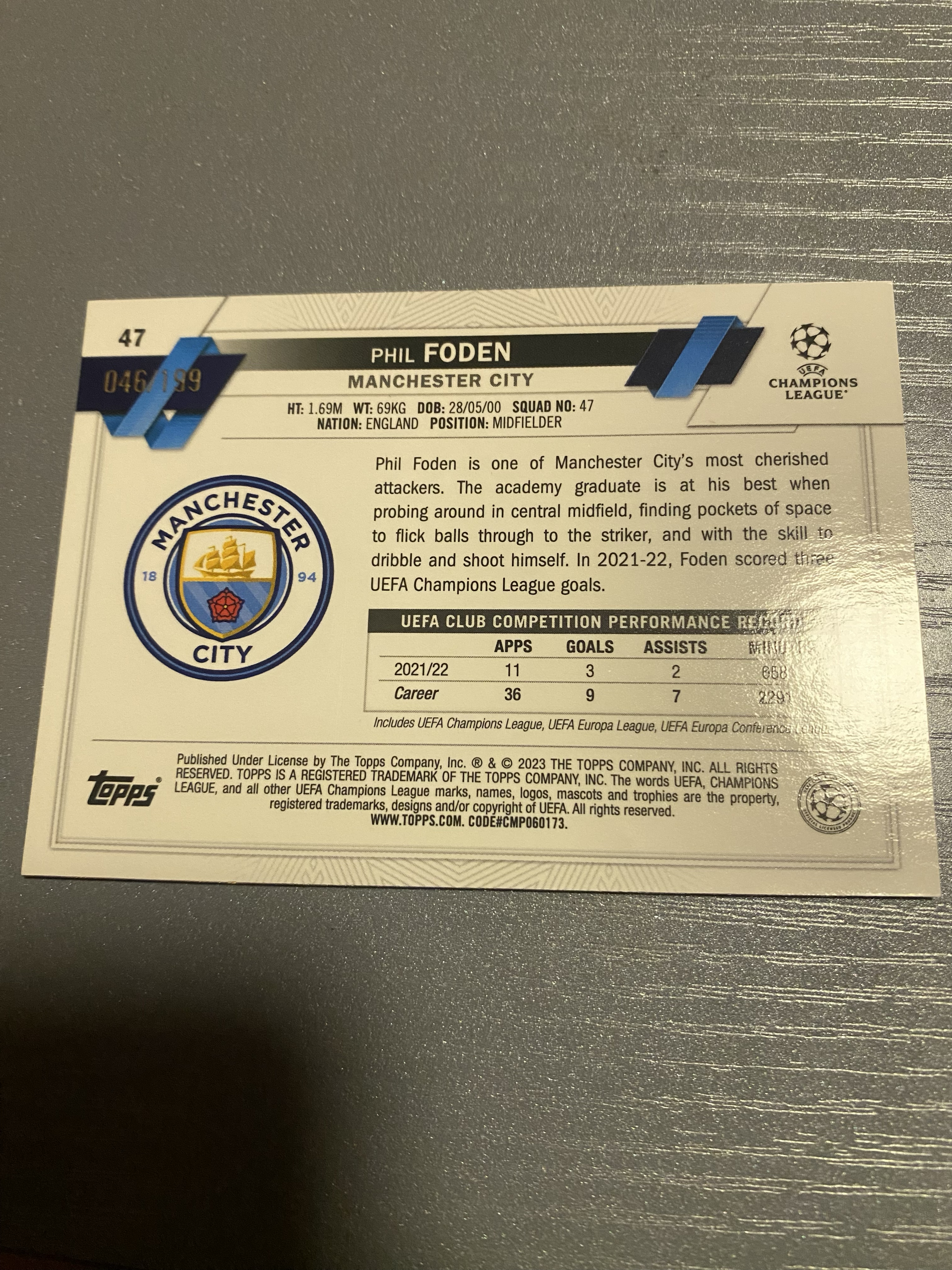 2023-24 Topps Chrome Phil Foden 欧冠 青波纹 折射 带编 046/199 太子 菲尔 福登 英格兰 曼城 卡品如图 收藏必备