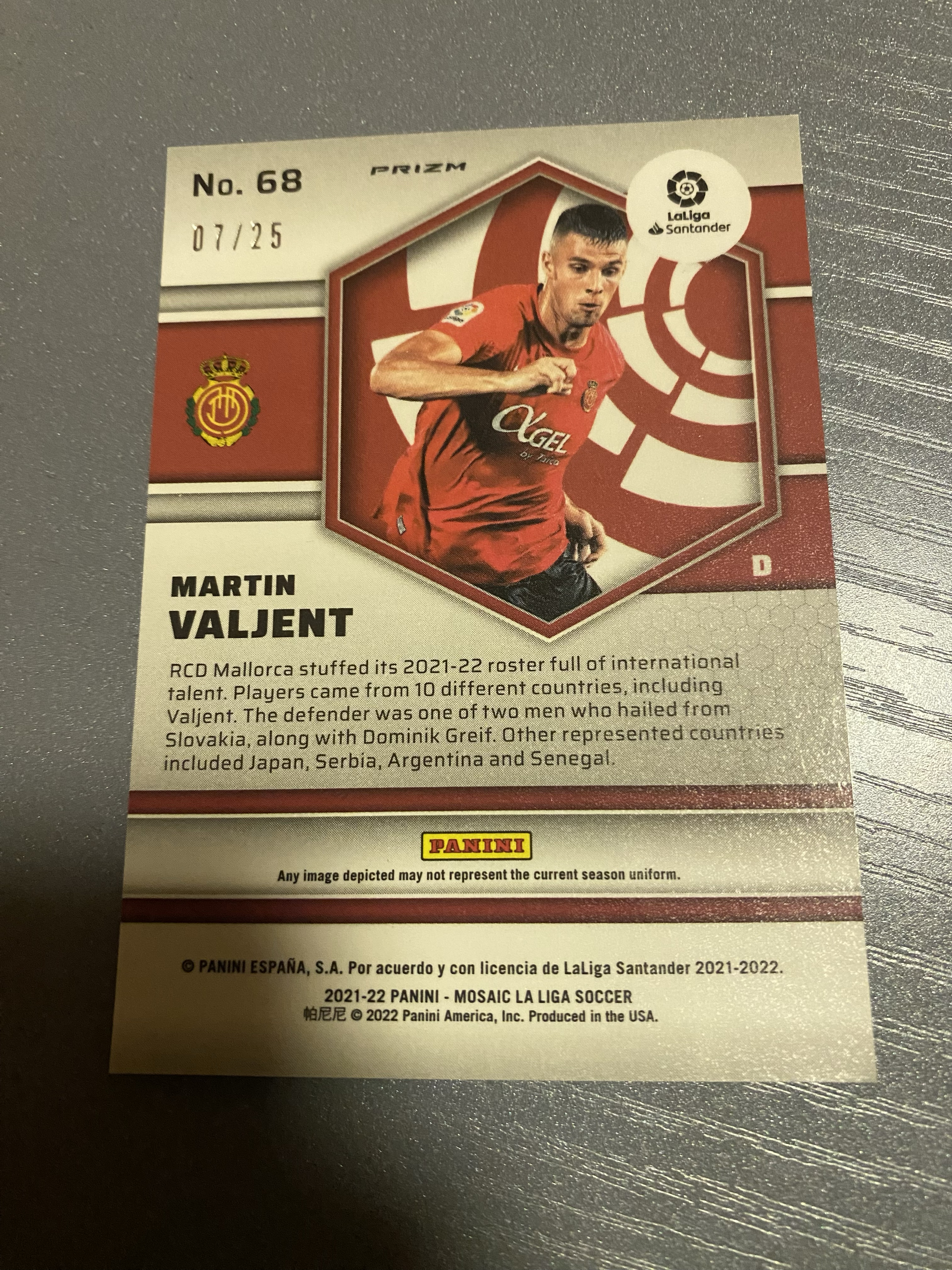 2021-22 Panini Mosaic La Liga and Serie A Martin Valjent 马赛克 西甲 粉折 折射 低编 07/25 马丁 瓦连托 马洛卡 卡品如图 收藏必备