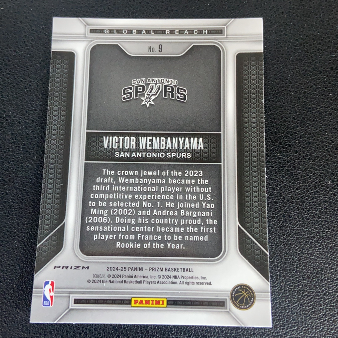 2024-25 Panini Prizm Victor Wembanyama 【9527拍卖】 PZ 马刺 维克托 文班亚马 Global Reach特卡 银折 卡品如图