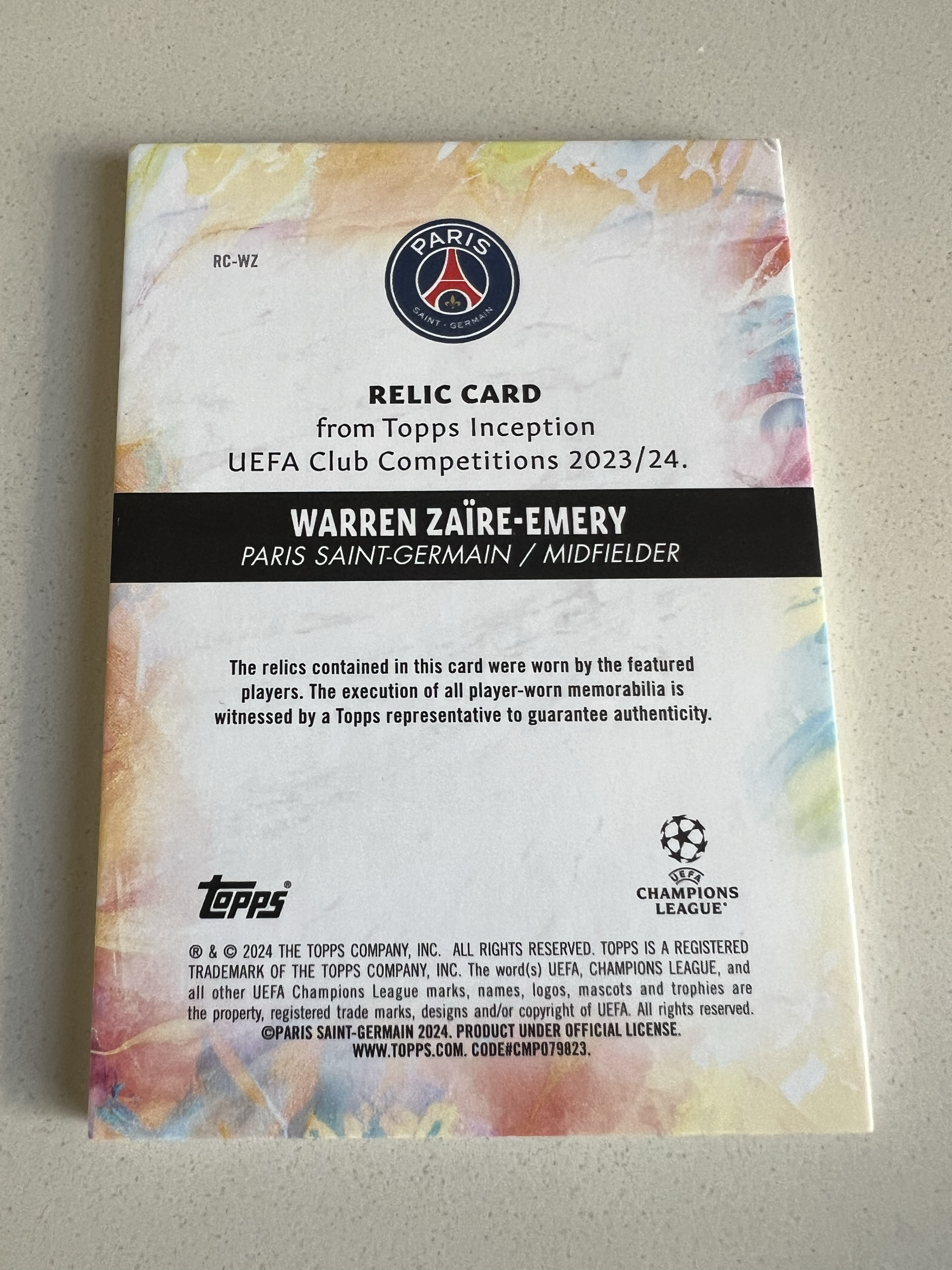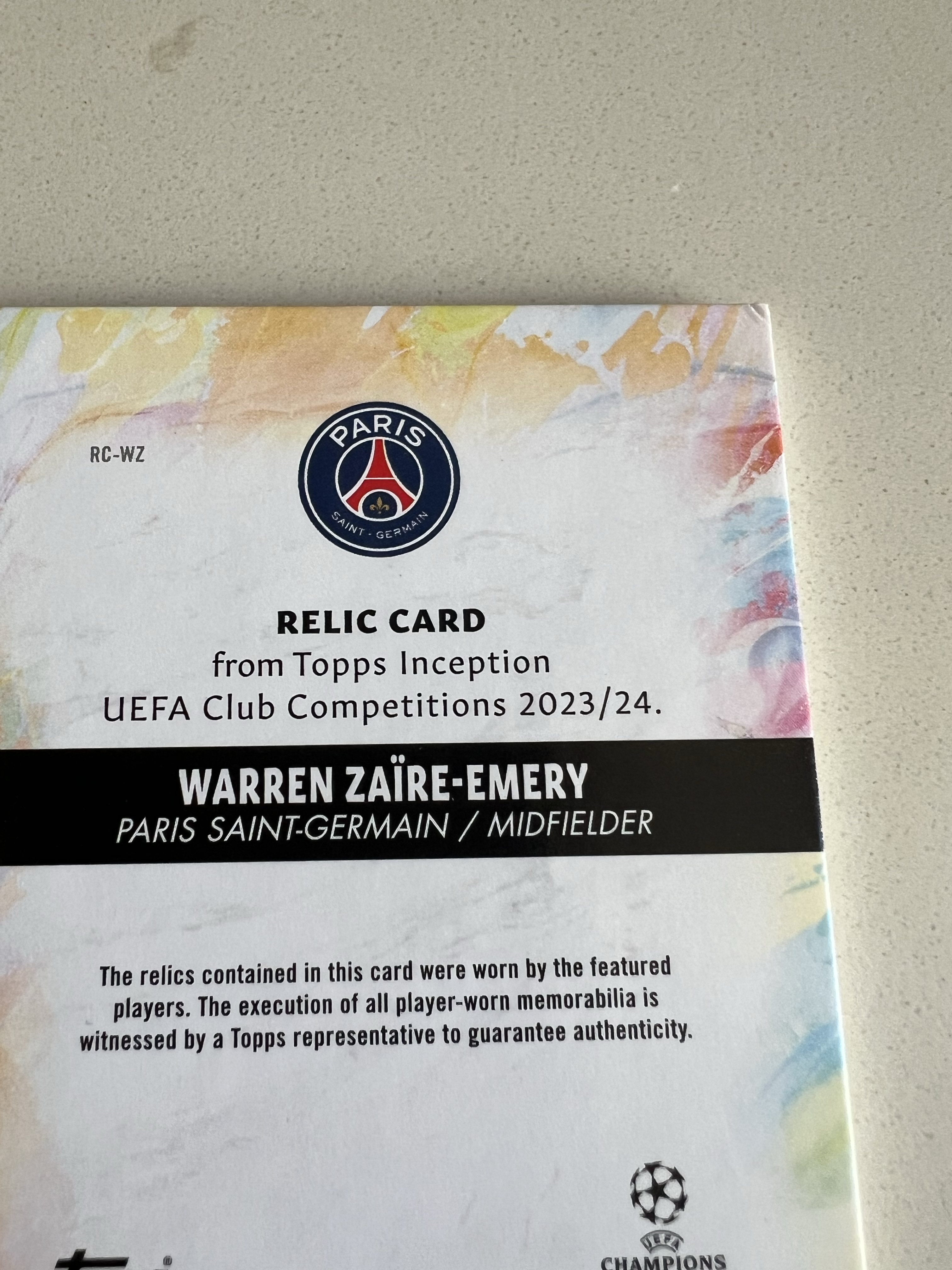 2023-24 Topps 盗梦空间 Warren Zaïre-Emery inception 沃伦 扎伊尔 埃梅里 落场球球衣卡 姆巴佩梅西登贝莱内马尔队友 限量200编 潜力巨大投资收藏必备