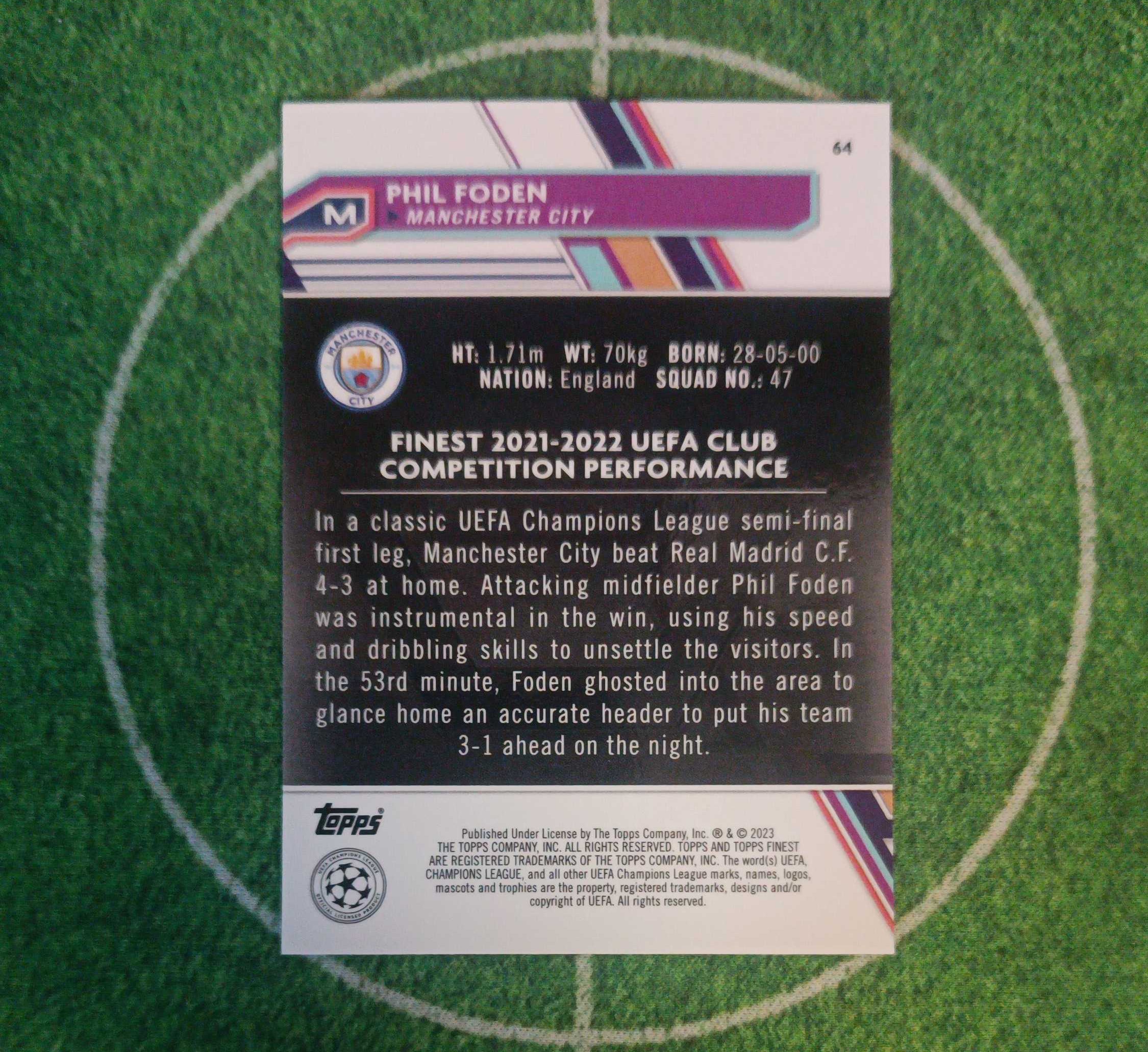 2023 Topps Finest Phil Foden 曼城 太子 福登 299编 紫折 英格兰🏴 状态火热 豪门猎物