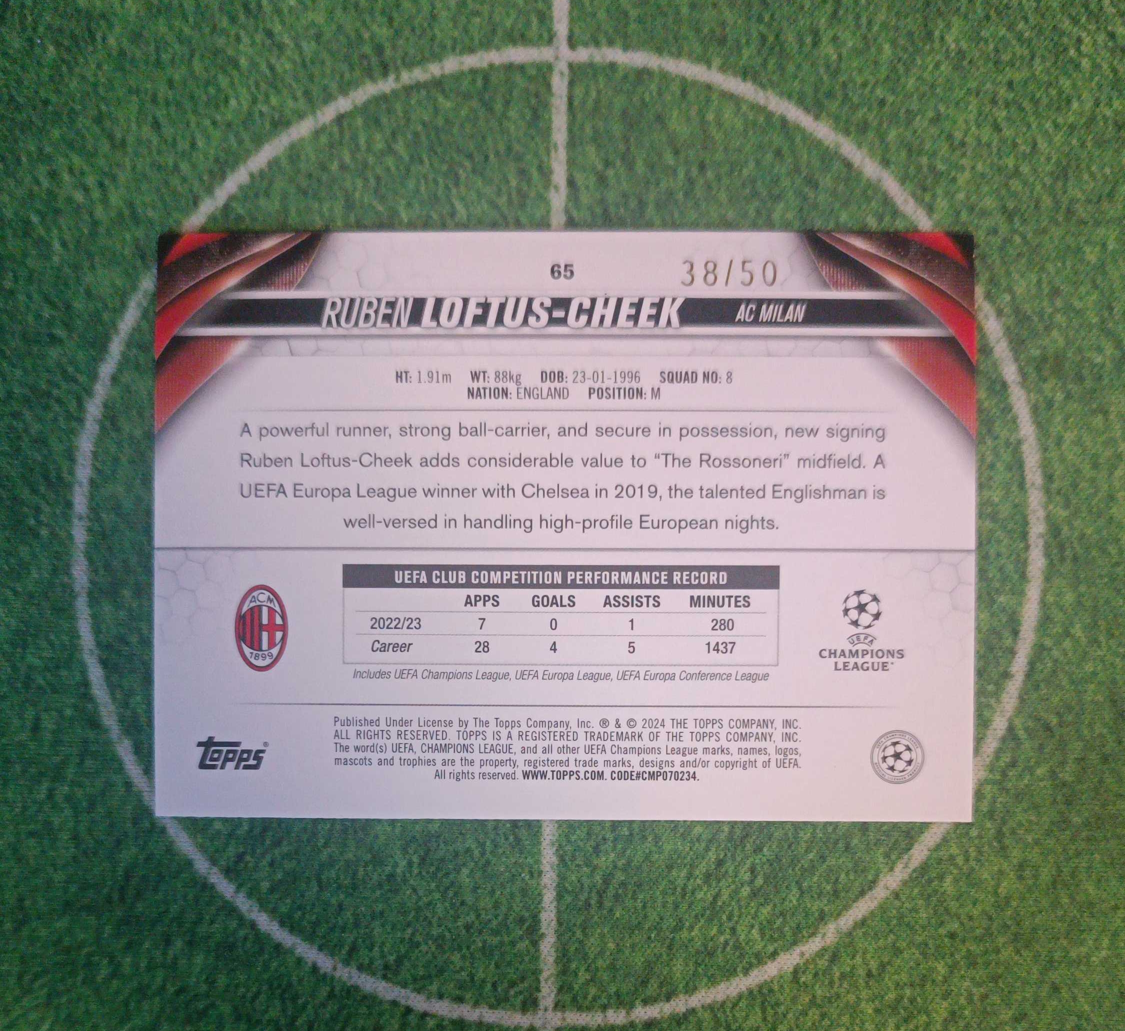 2024 Topps UCC Ruben Loftus Cheek 欧冠 AC米兰 齐克 50编 豪门球员 卡品如图