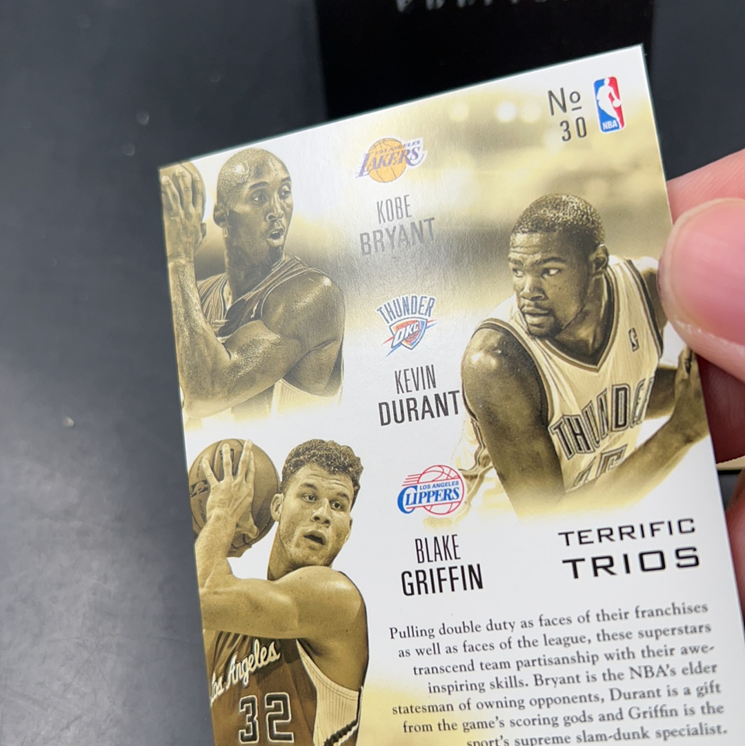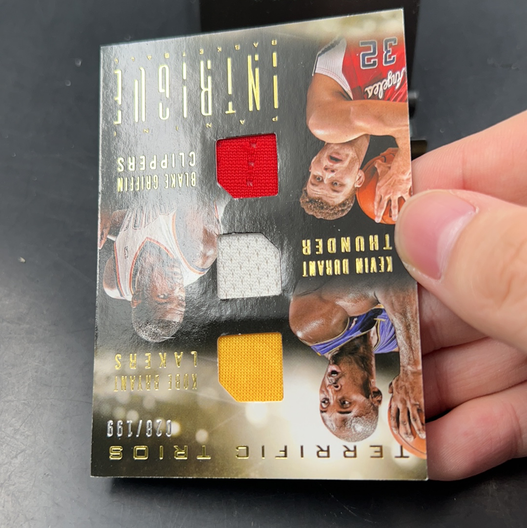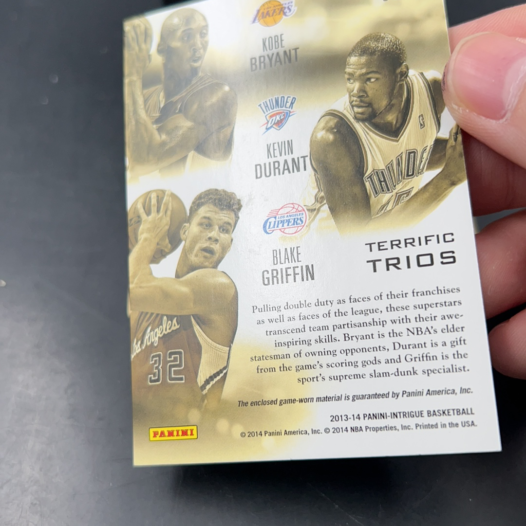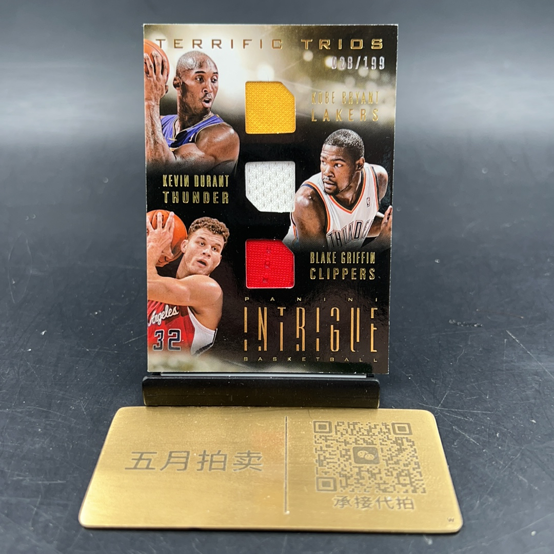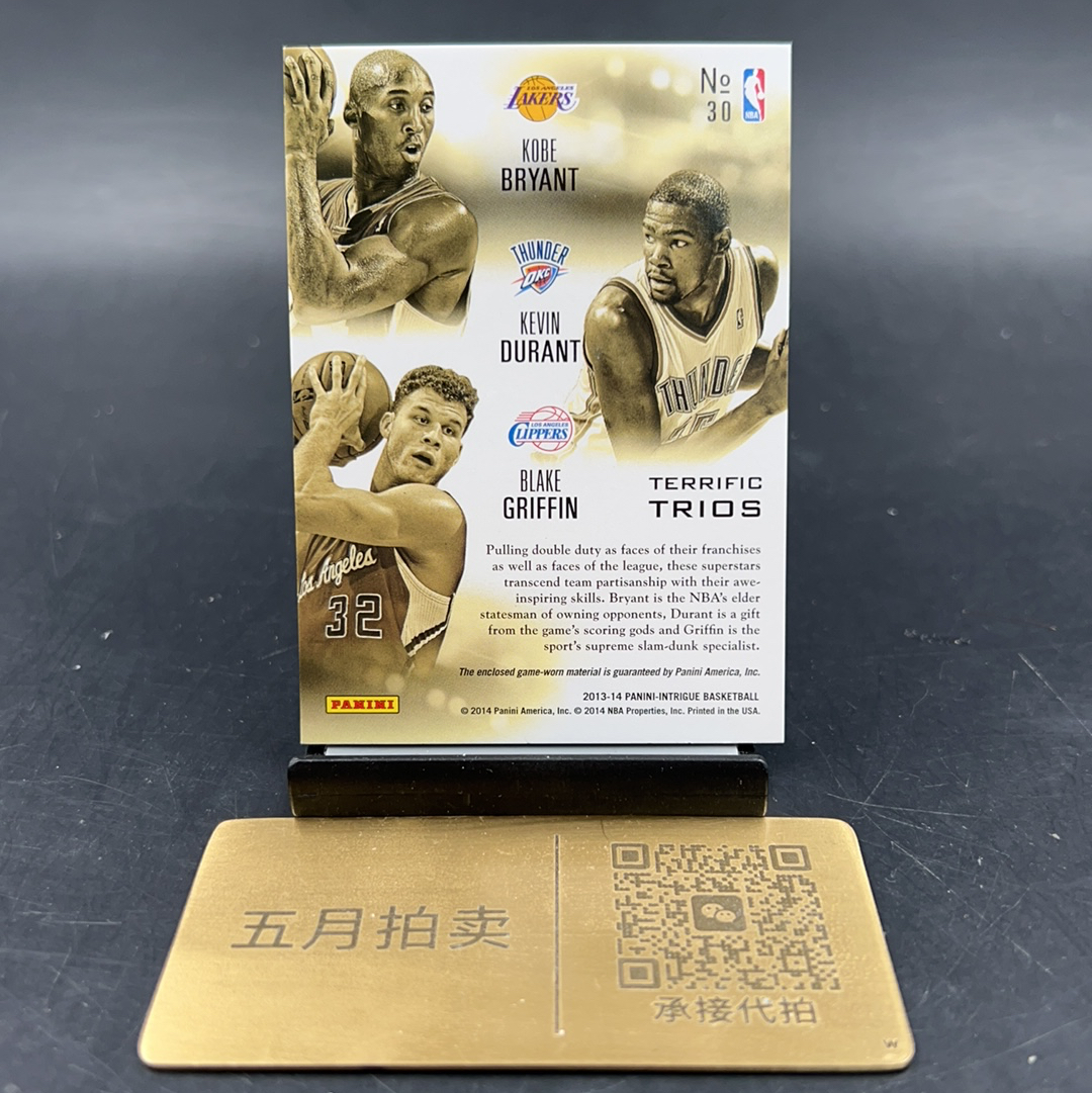 2013-14 Panini Intrigue Kobe Bryant 【五月拍卖】科比布莱恩特 凯文杜兰特 布雷克格里芬 阴谋 199编 亲穿GU 球衣切割 小窗 三人三窗 微瑕见图 红顶帽u35