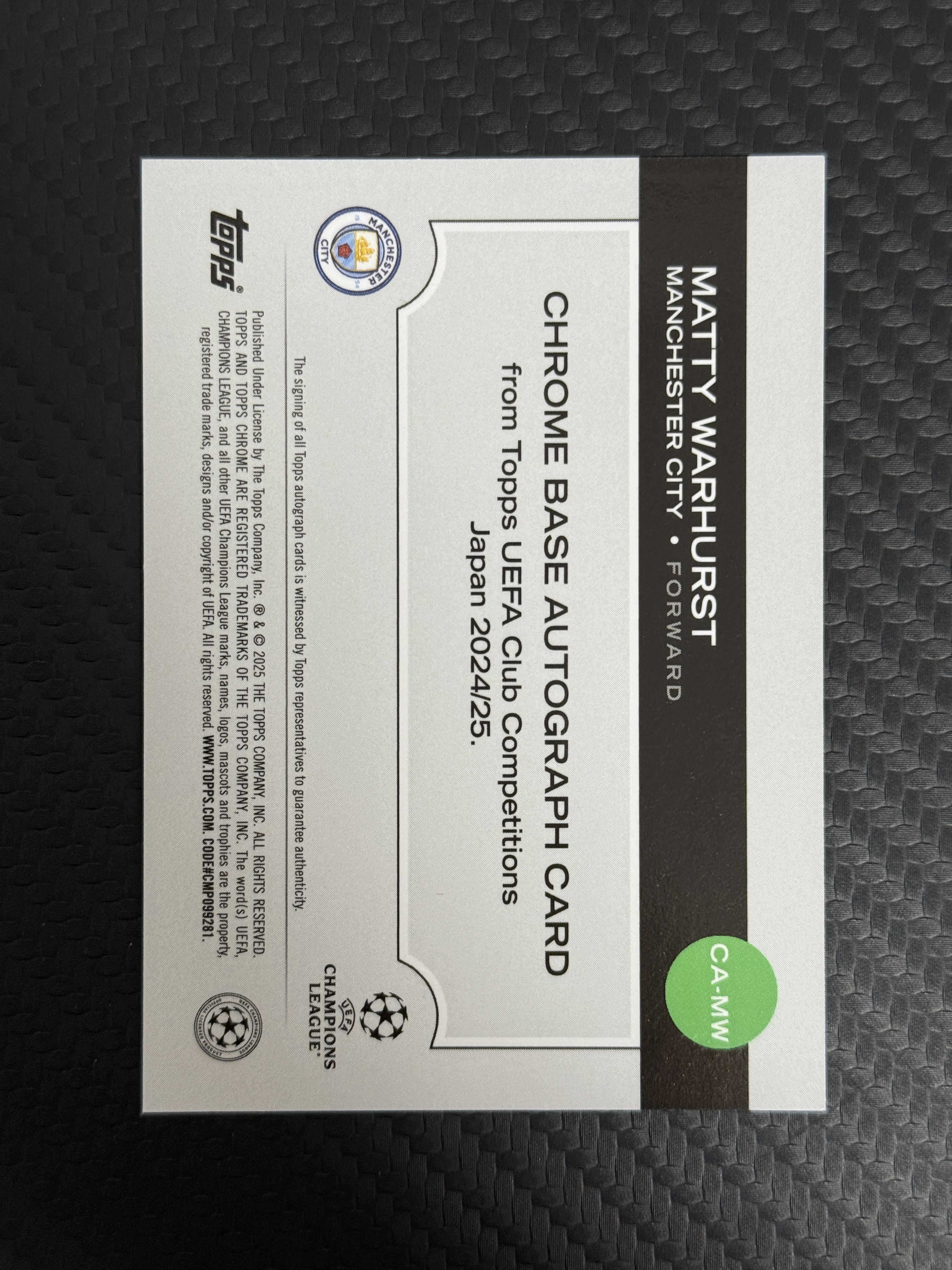 2024-25 Topps 日版 樱花 Japan Warhurst RC 【包来拍卖】曼城 沃赫斯特 签字 新秀 蓝迷宫折 75编 蓝mojo 蓝折 卡品如图 叉叉
