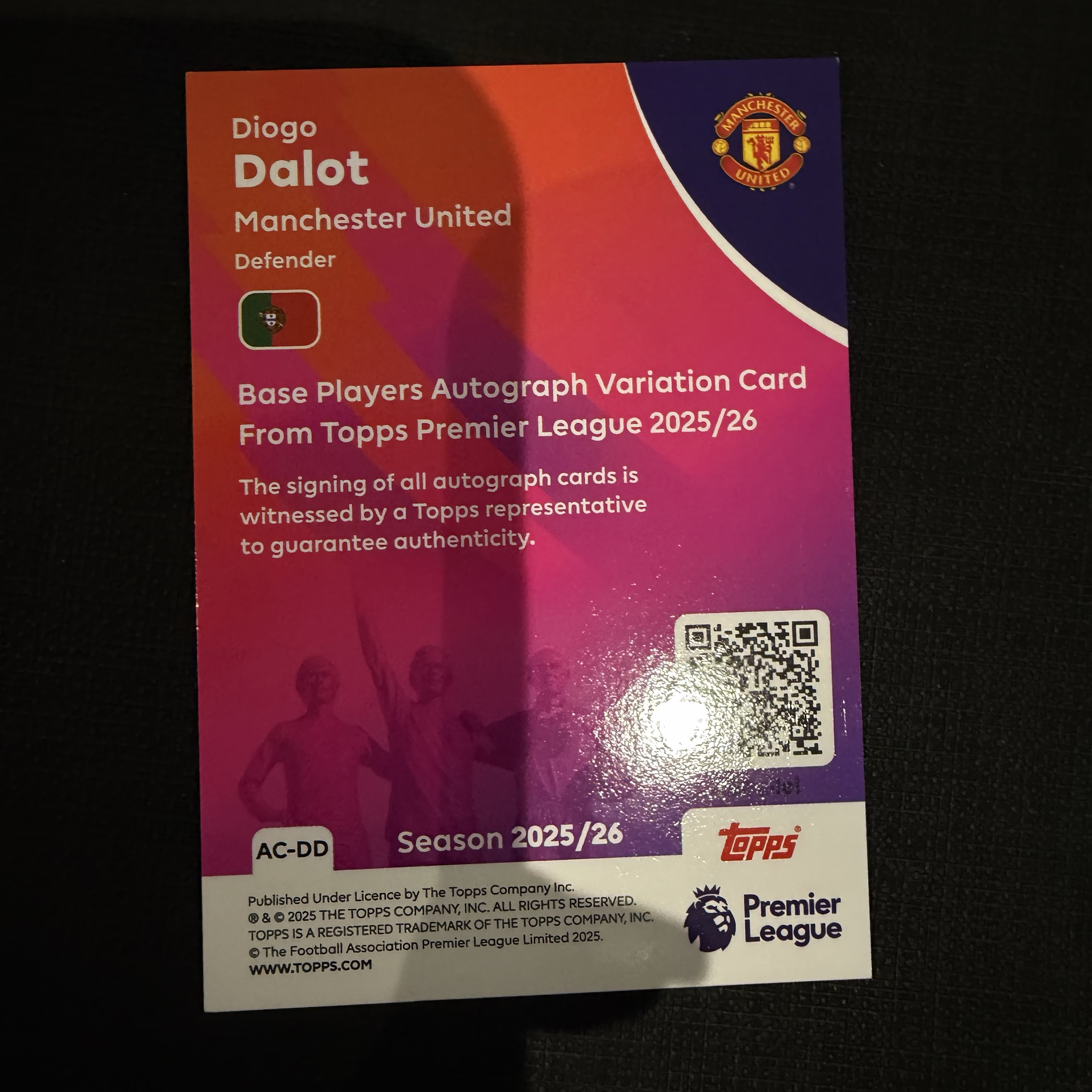 2025 Topps Premier Diogo Dalot 英超 曼联 迪奥戈 达洛特 /99编 绿折 签字 【默认微瑕一日一快递 不累计 不发到付】卡aa